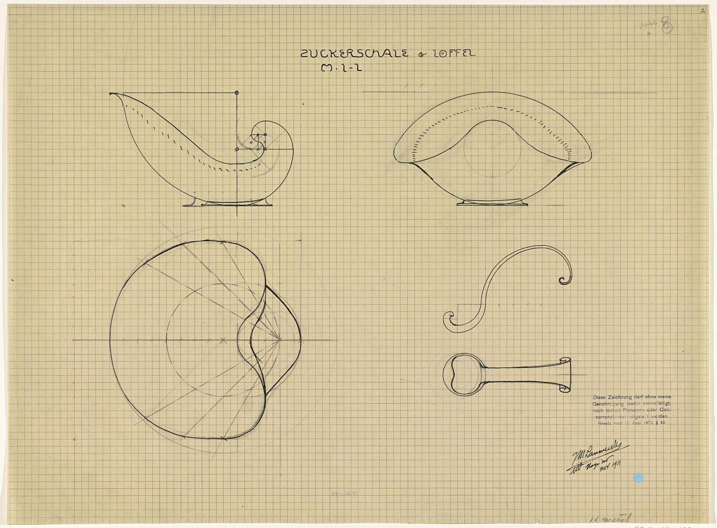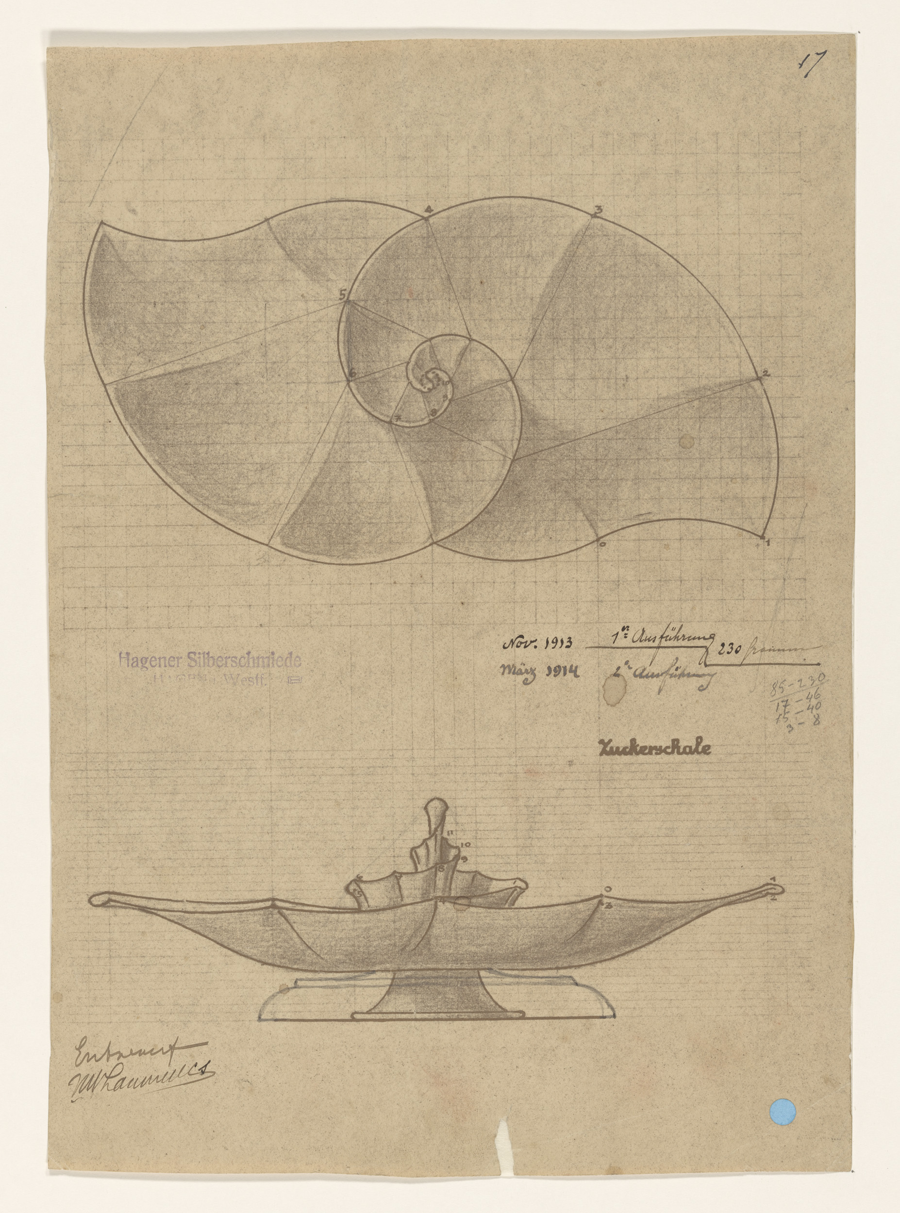 Ontwerp voor een zilveren suikerschaal
