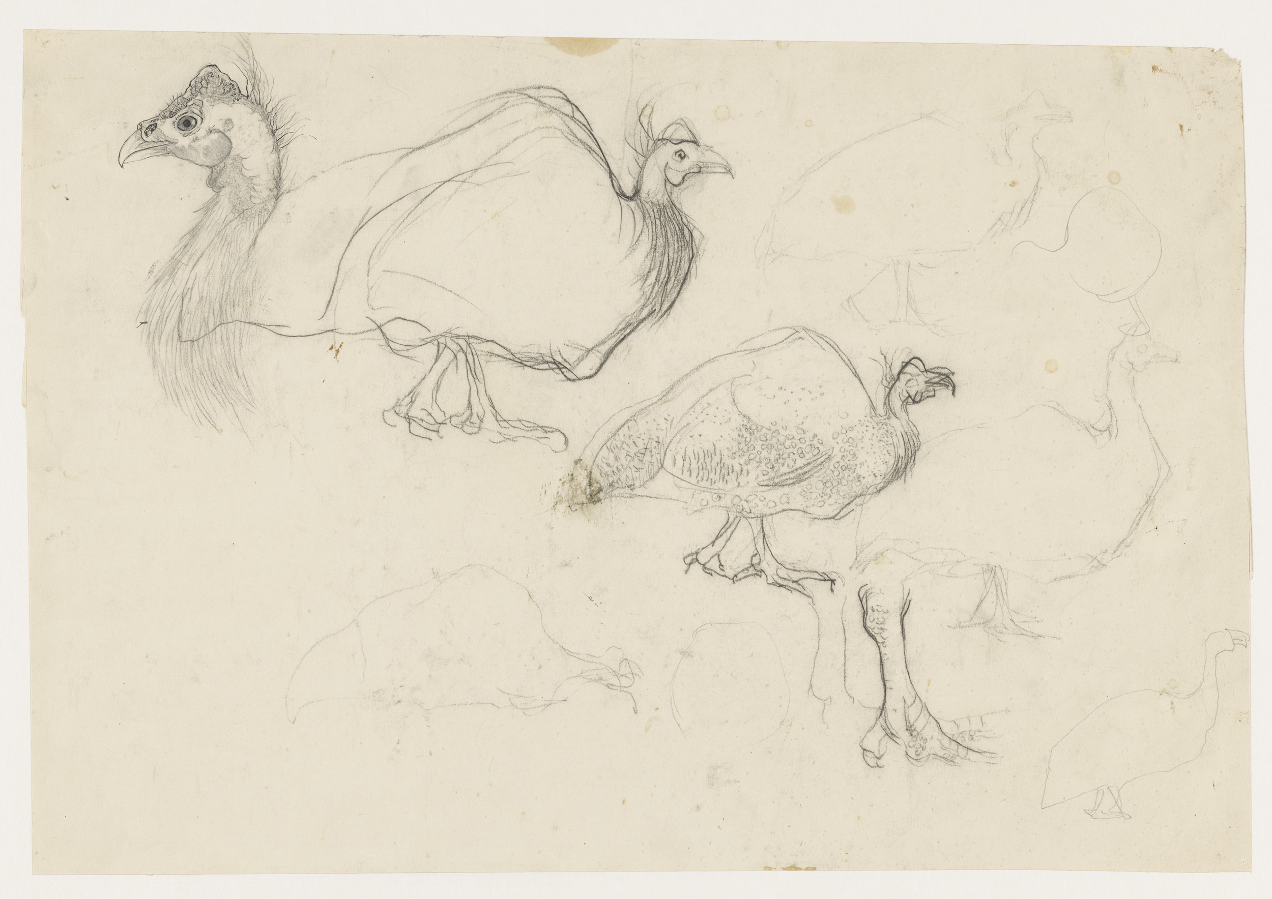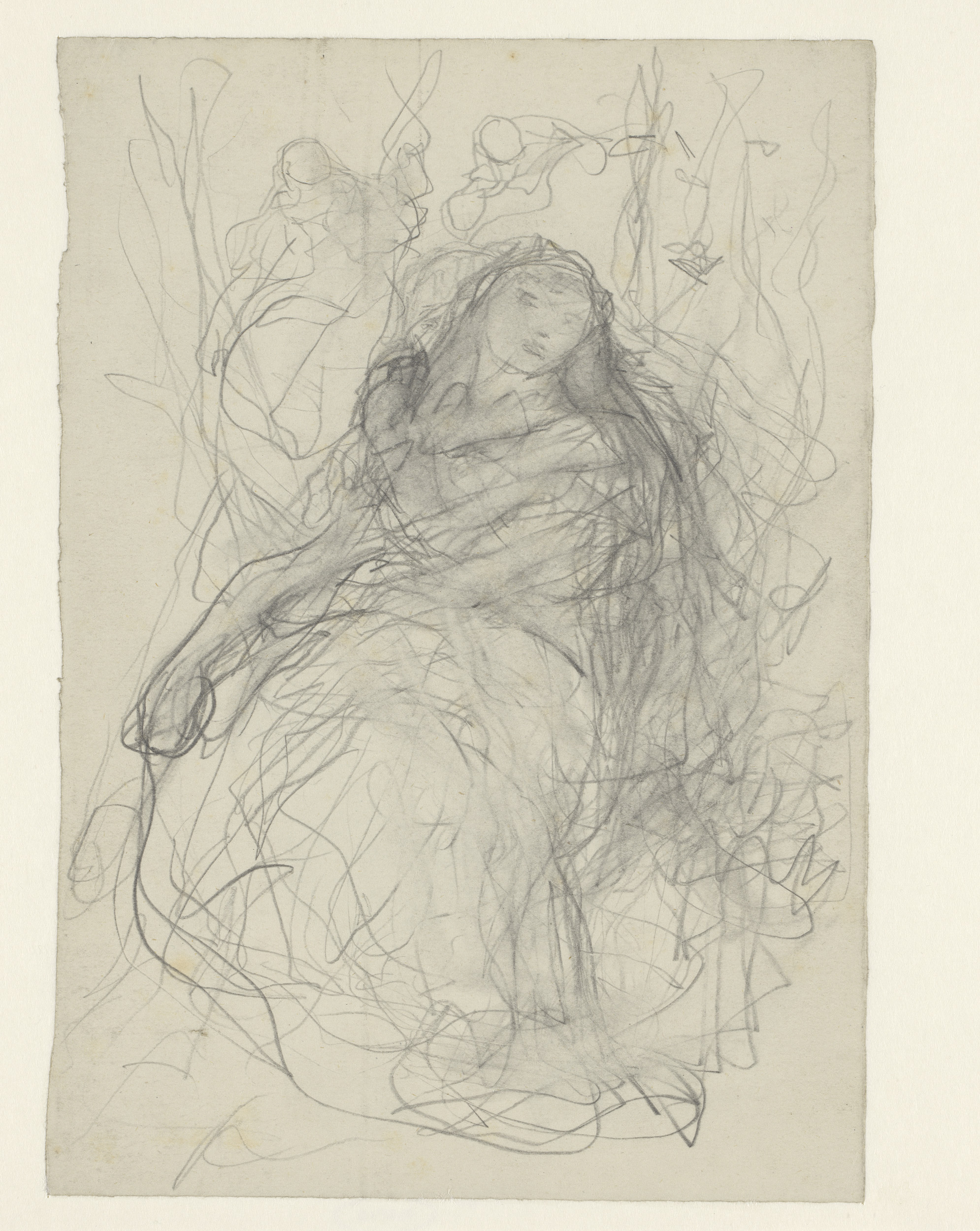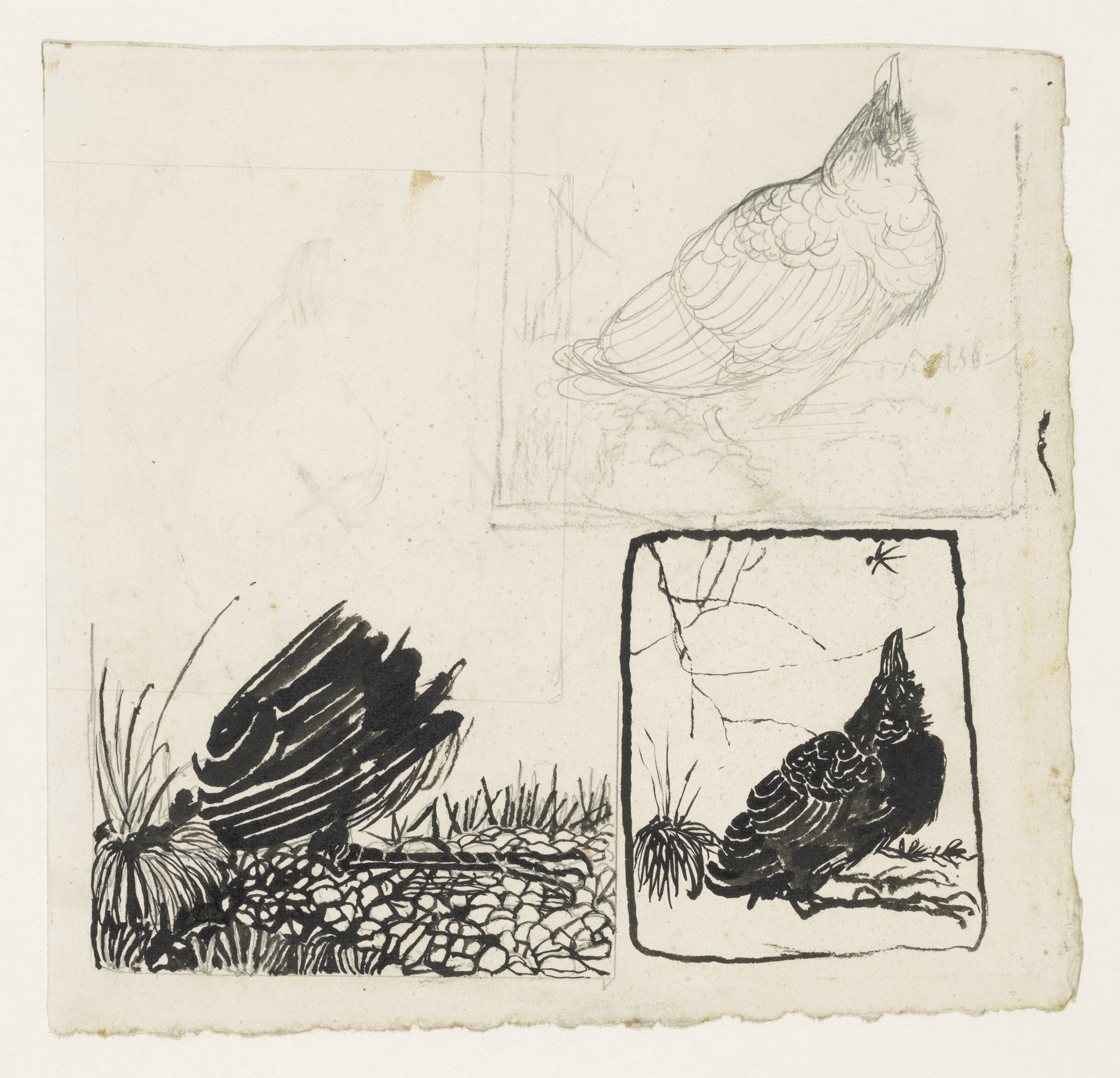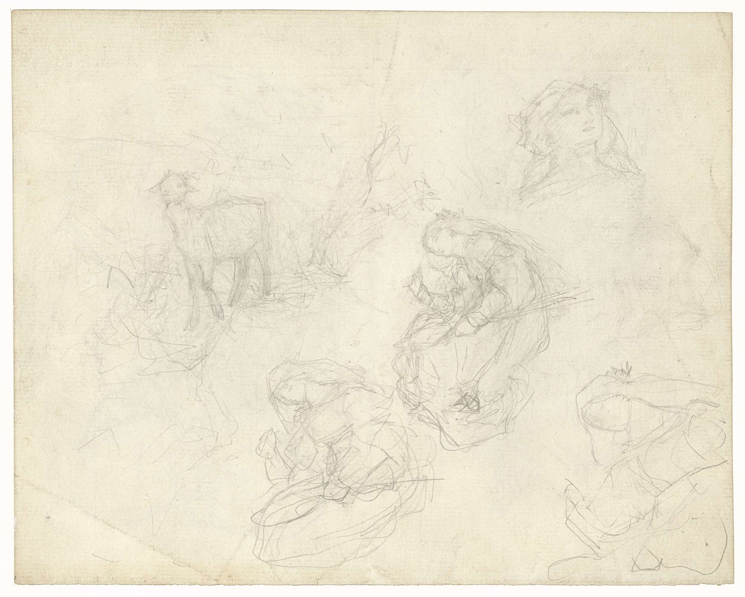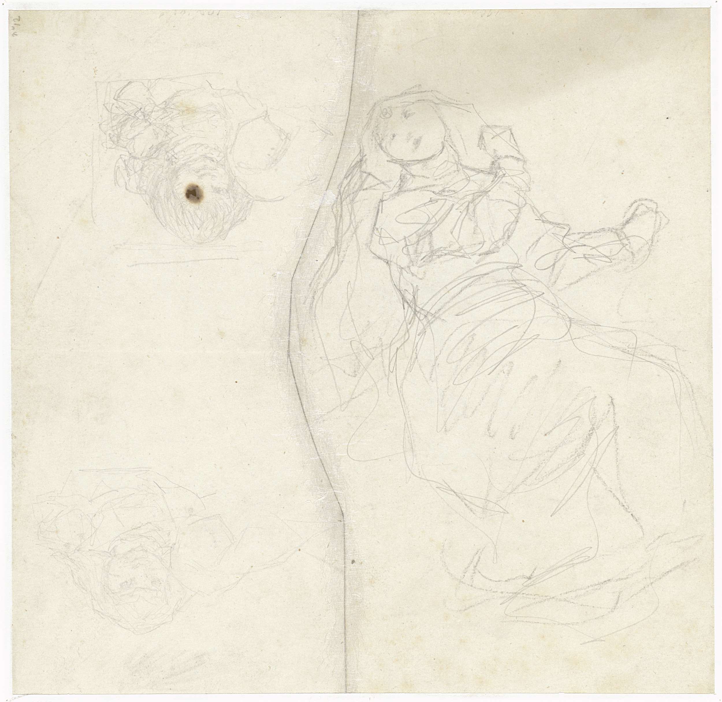 Schets van een vrouw met vlinders en twee studies va...