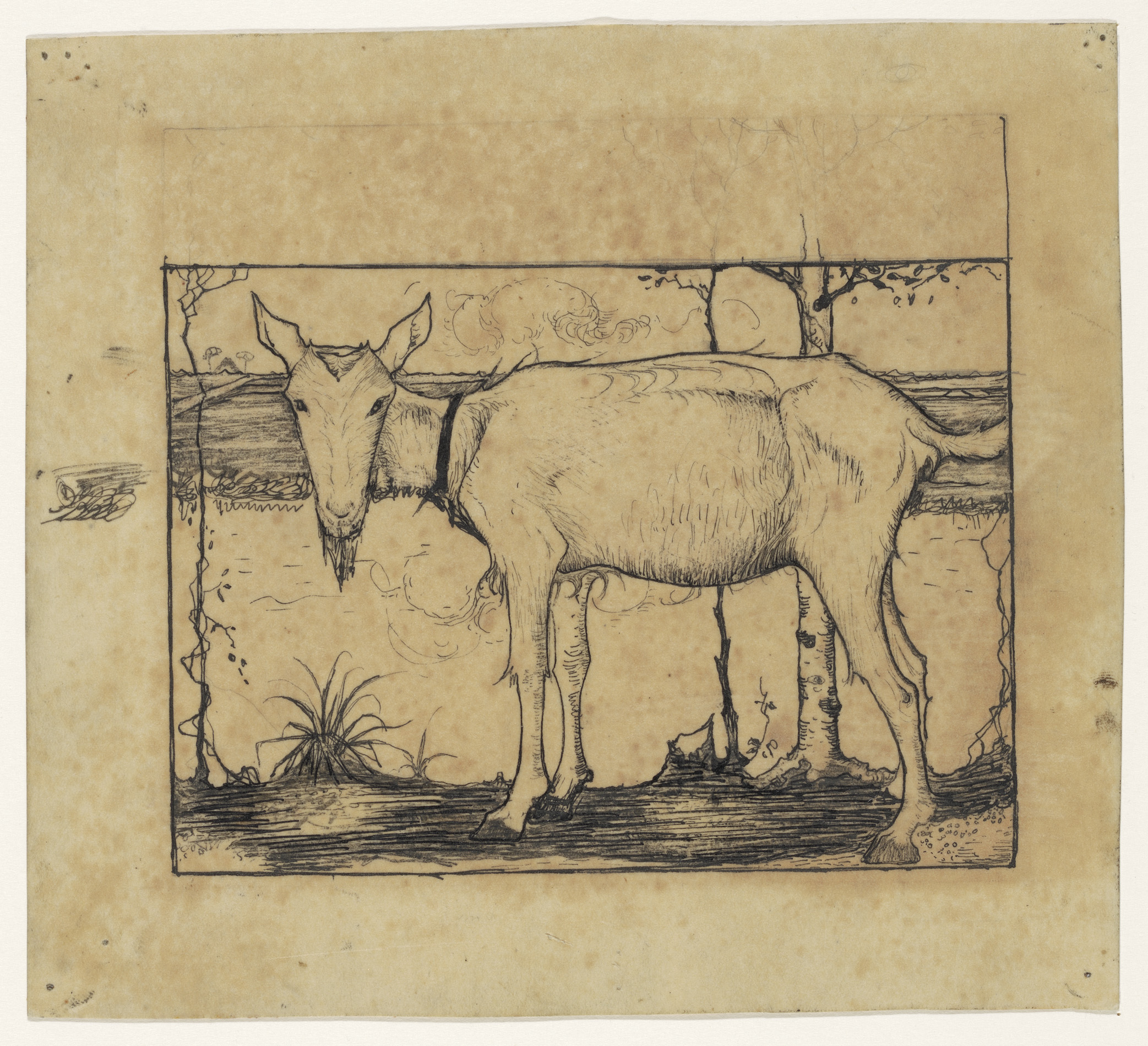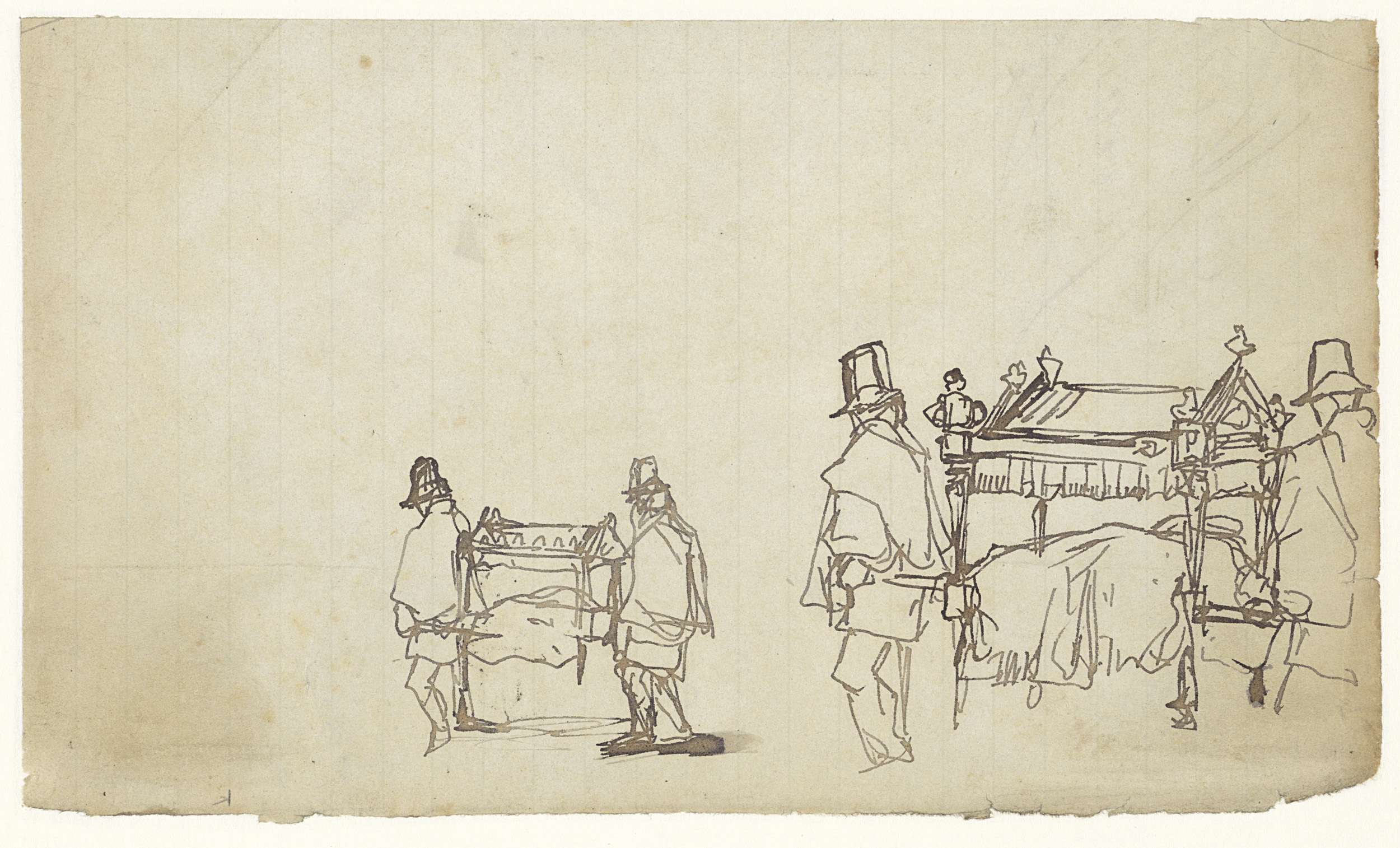 Twee schetsen van een landschap