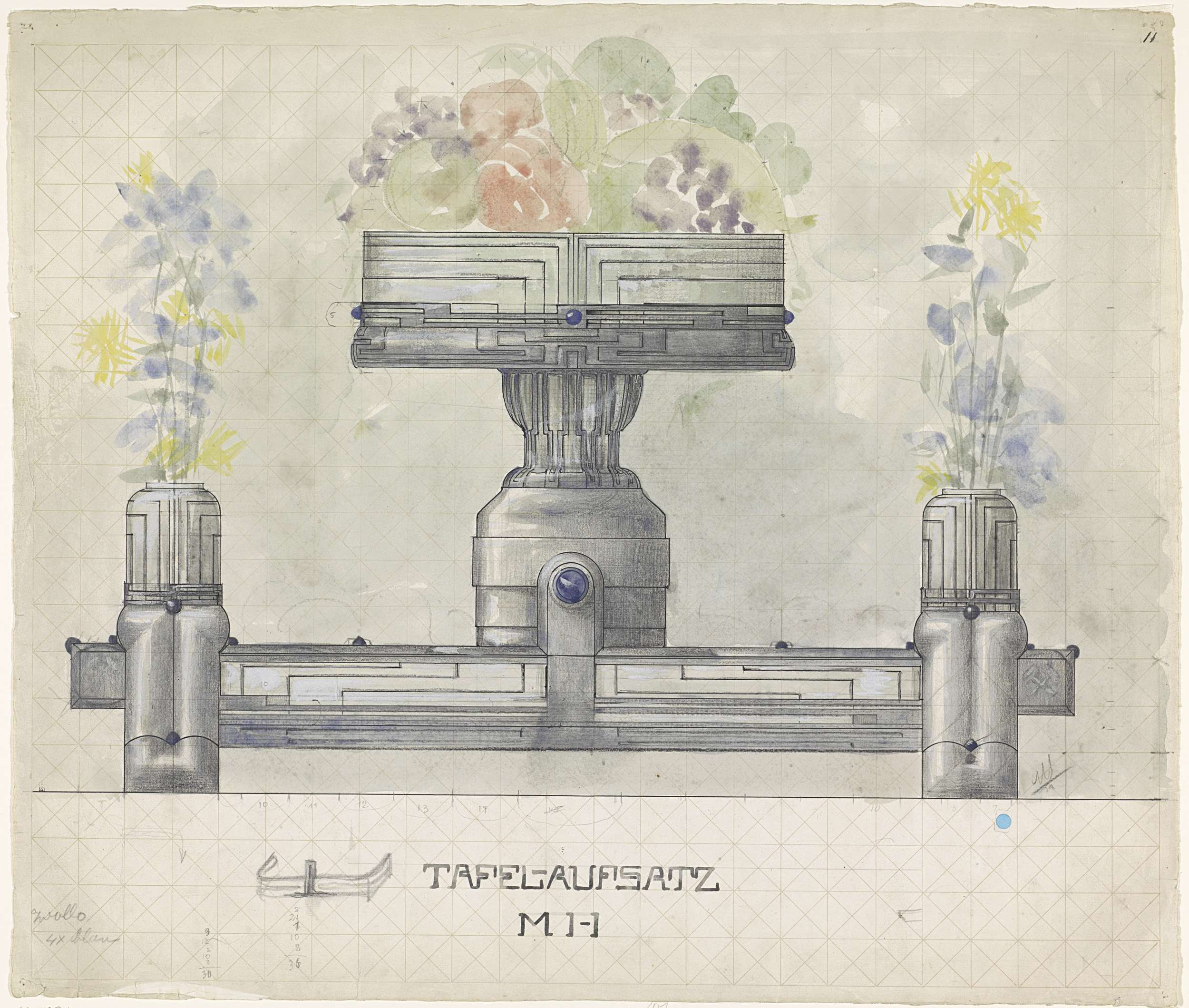 Ontwerp voor een zilveren tafelstuk, versierd met bl...