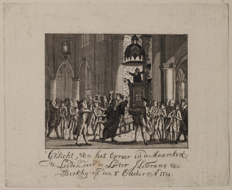 Oproer in de Maarekerk in Leiden door Johannes le Fr...
