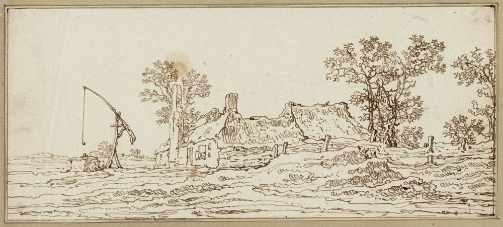 Landschap met boerderij en put