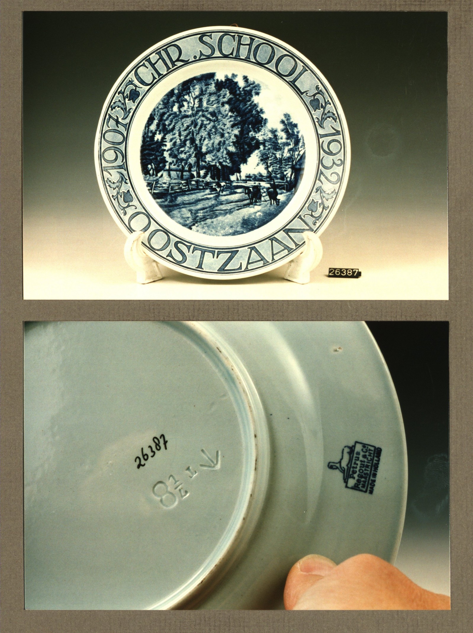 Wandbord met decor Chr.school Oostzaan 1907-1932