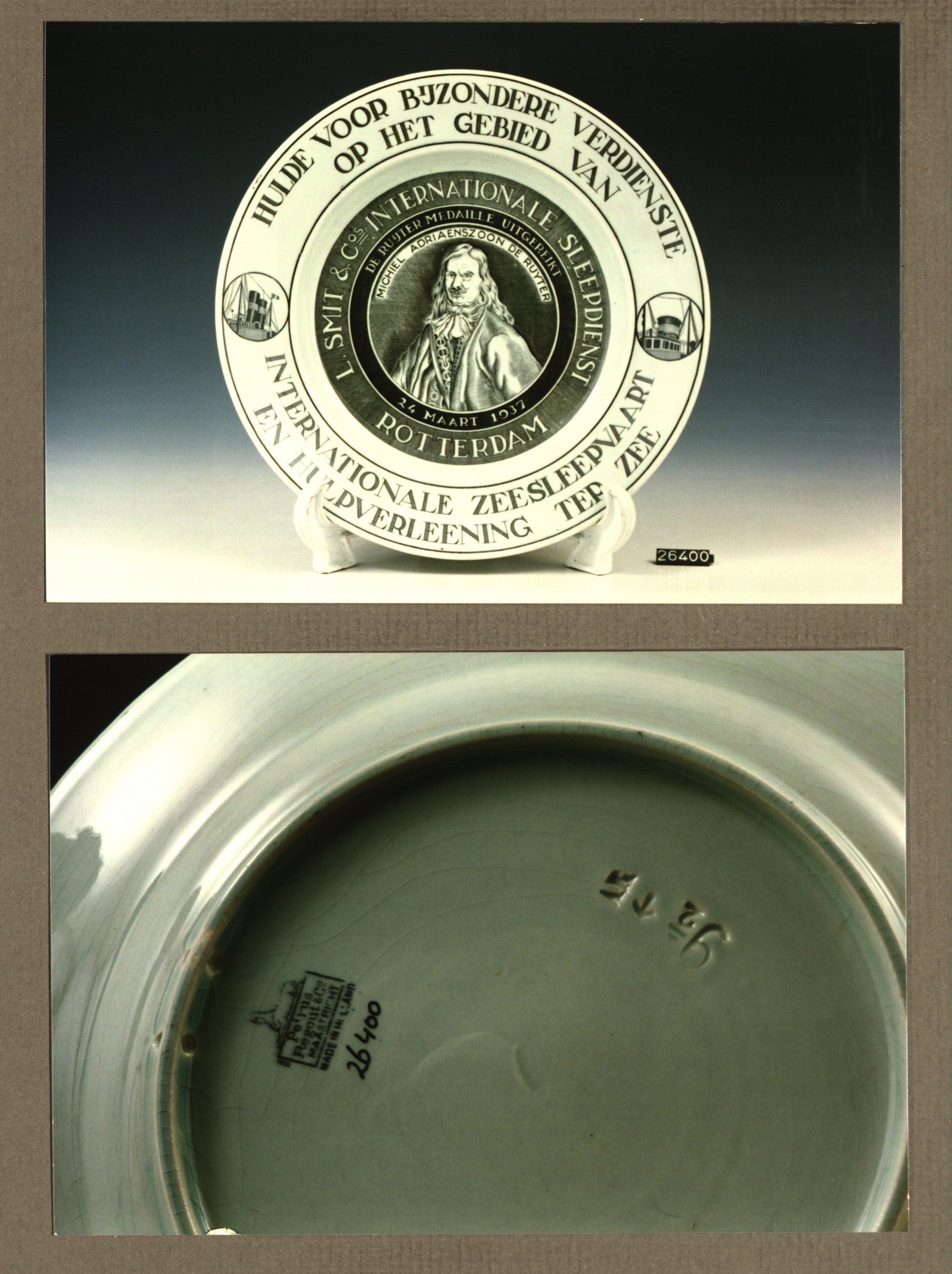 Wandbord met decor Int.zeesleepvaart L.Smit en Co. 1937