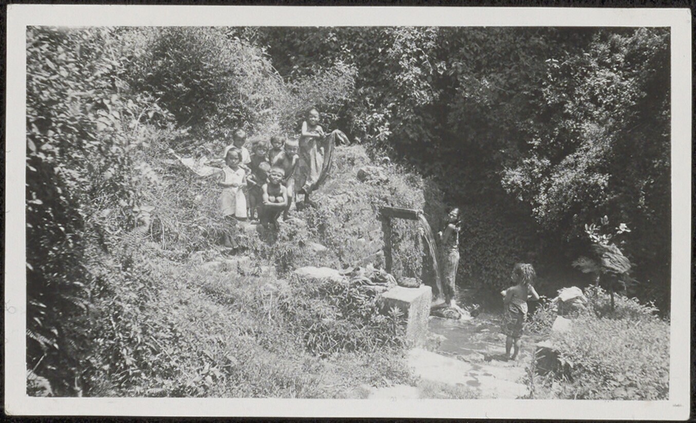 Groepsportret, vermoedelijk van dorpsbewoners, met i...