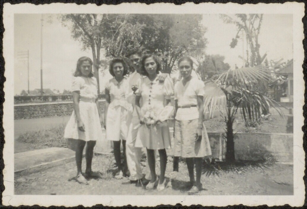 Groepsportret van jonge vrouwen in kamerjassen en na...