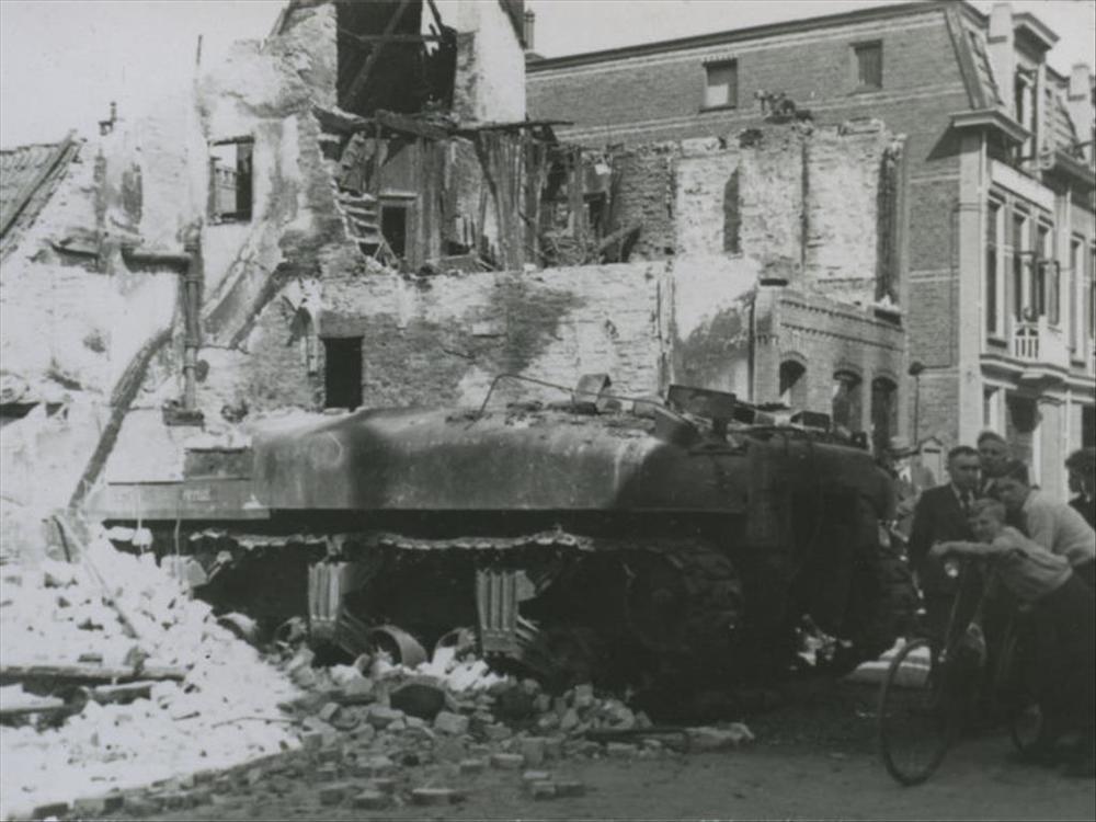 geëxplodeerde Shermantank op A Kerkhof te Groningen