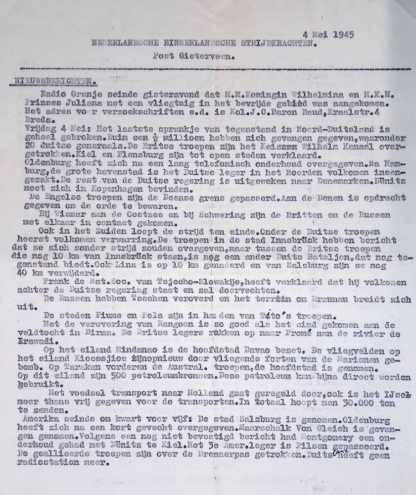 Nederlandsche Binnenlandsche Strijdkrachten, 4 mei 1945