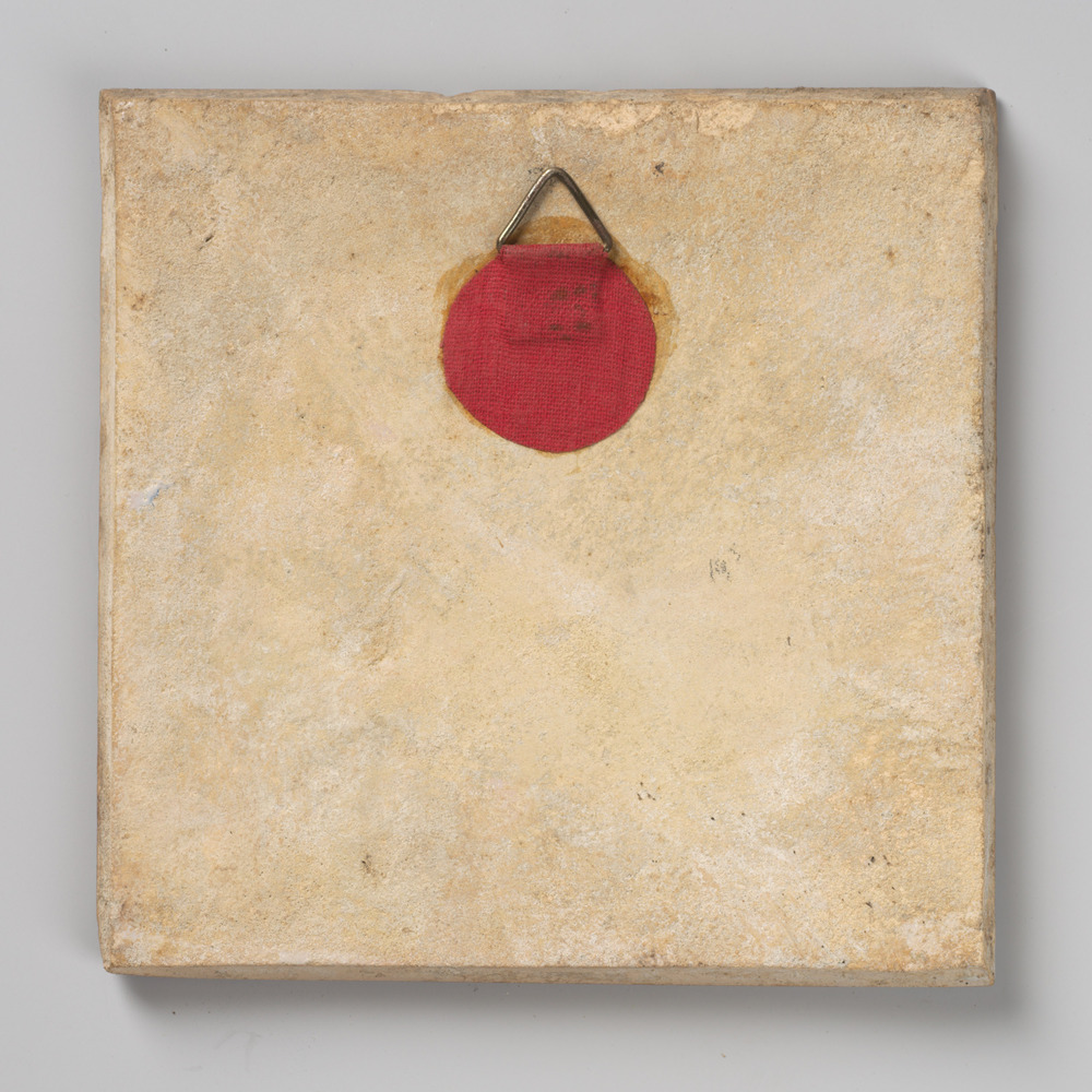 tegel van aardewerk met tinglazuur, voorstellende: h...