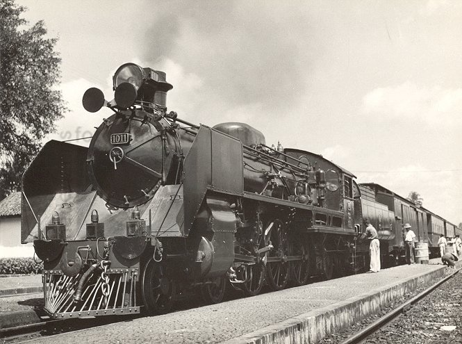 Stoomlocomotief in Tasikmalaya, Java, Indonesië (1939)