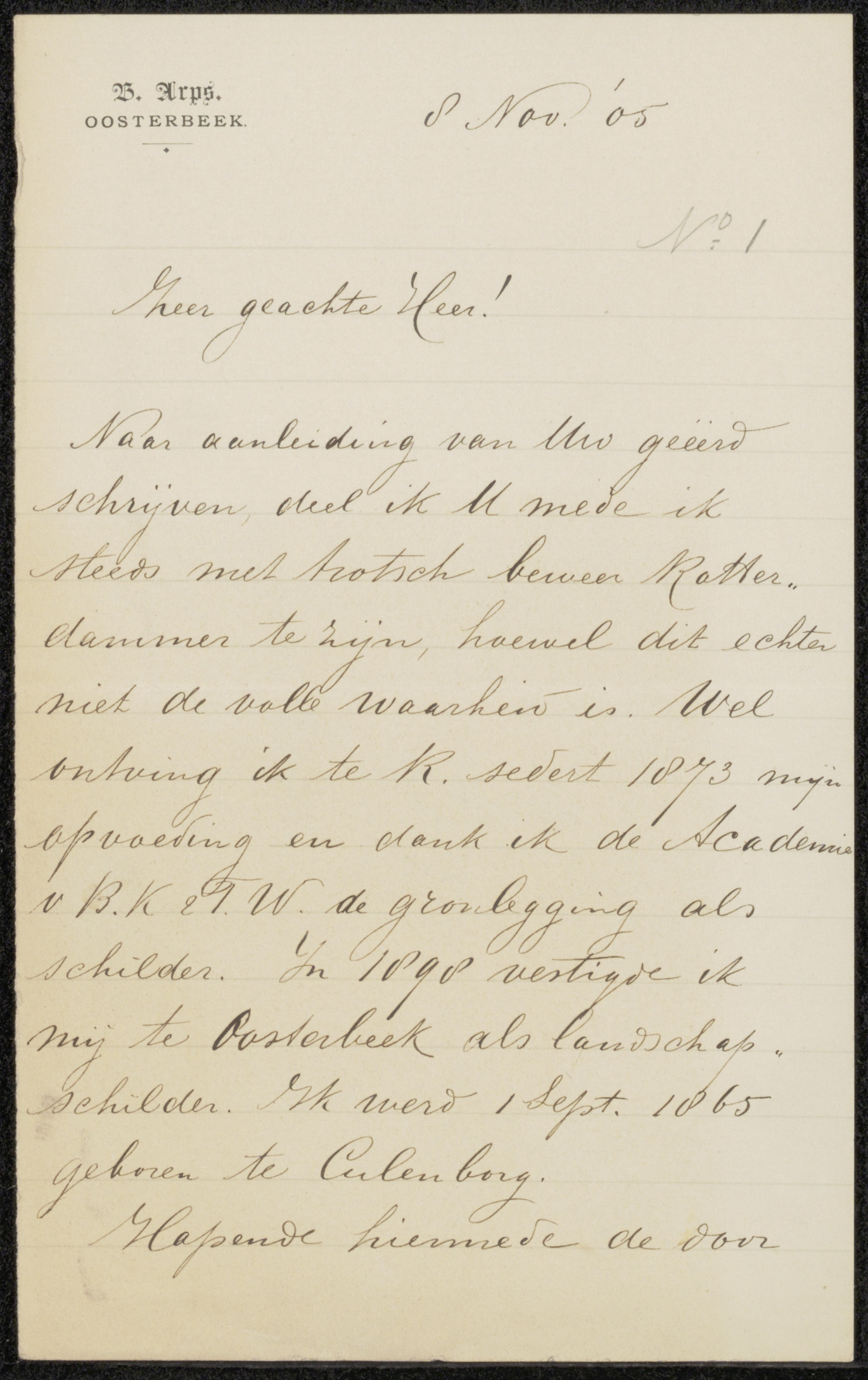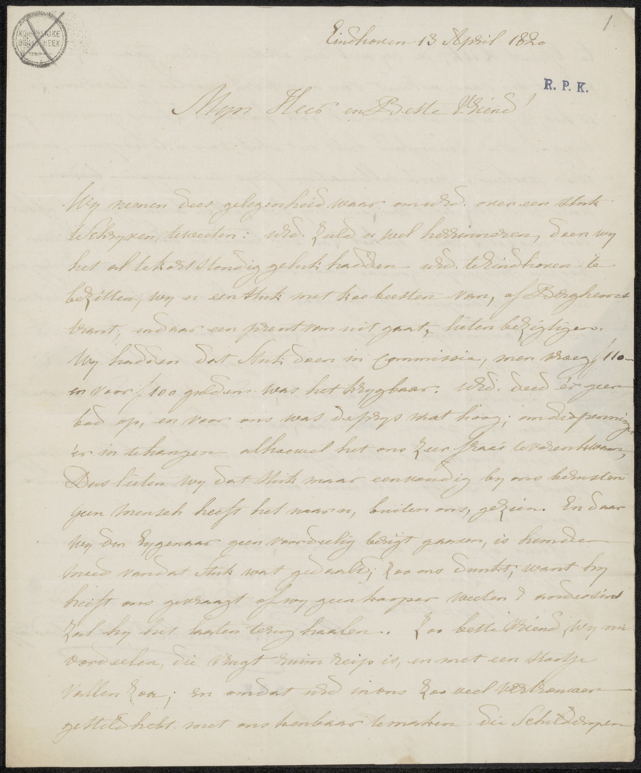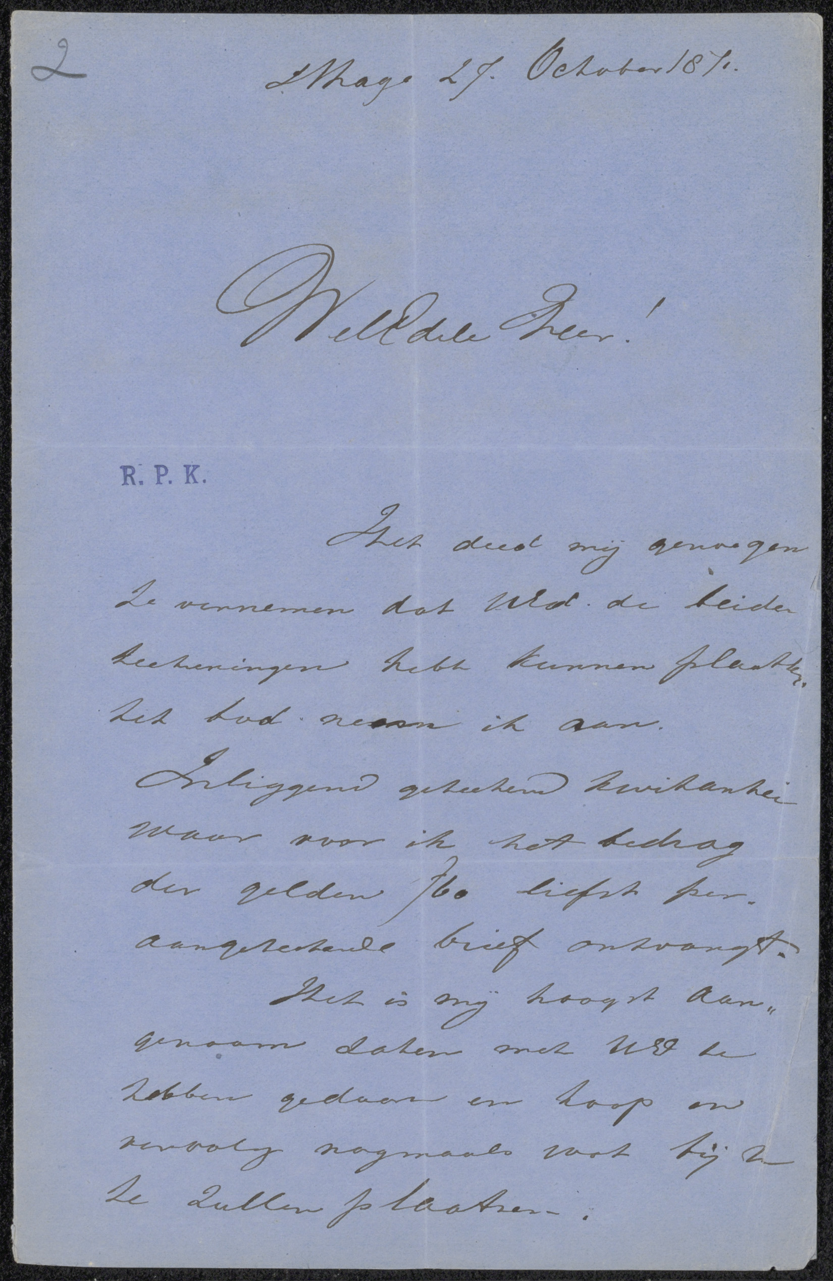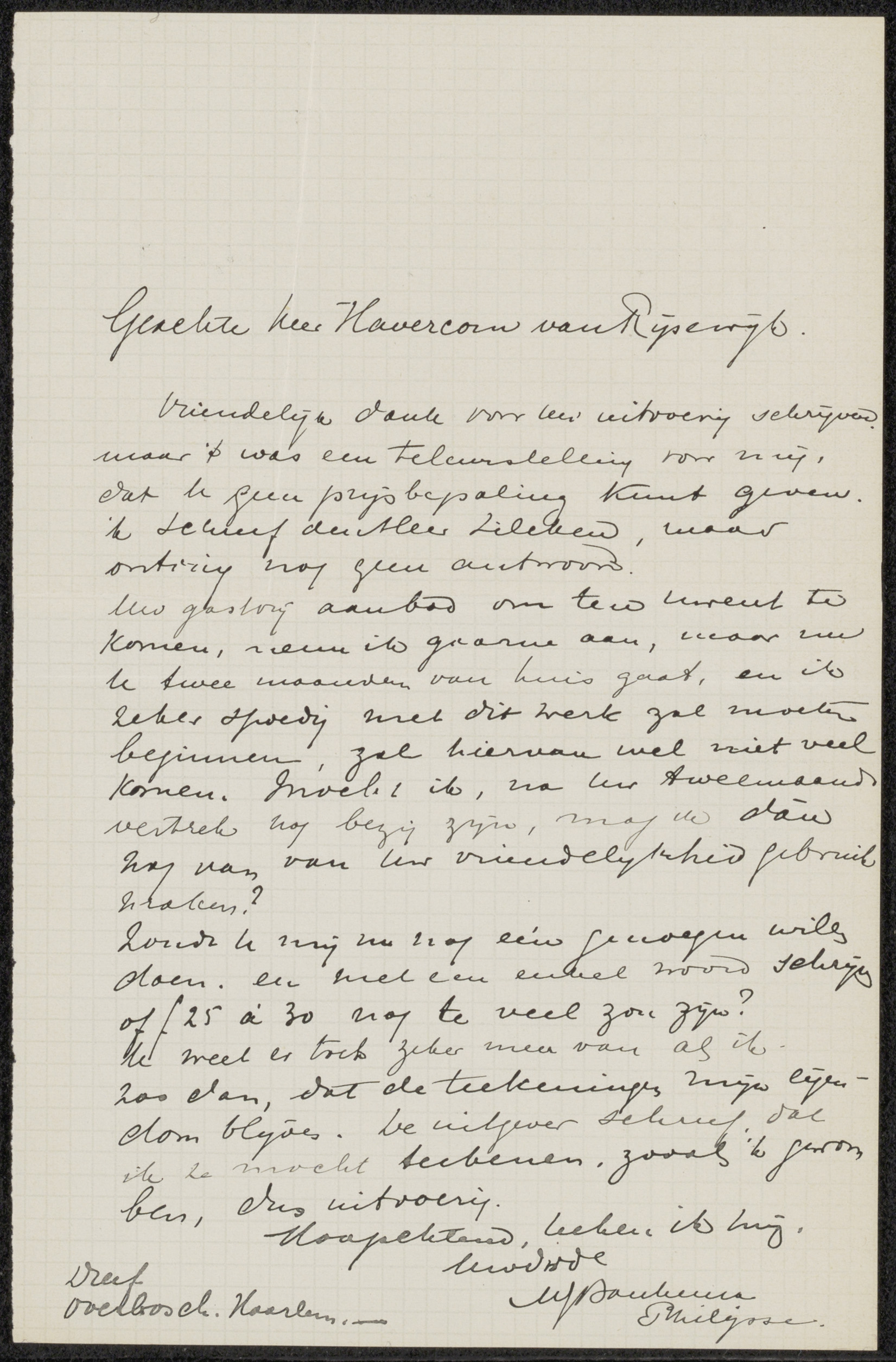 Brief aan Pieter Haverkorn van Rijsewijk