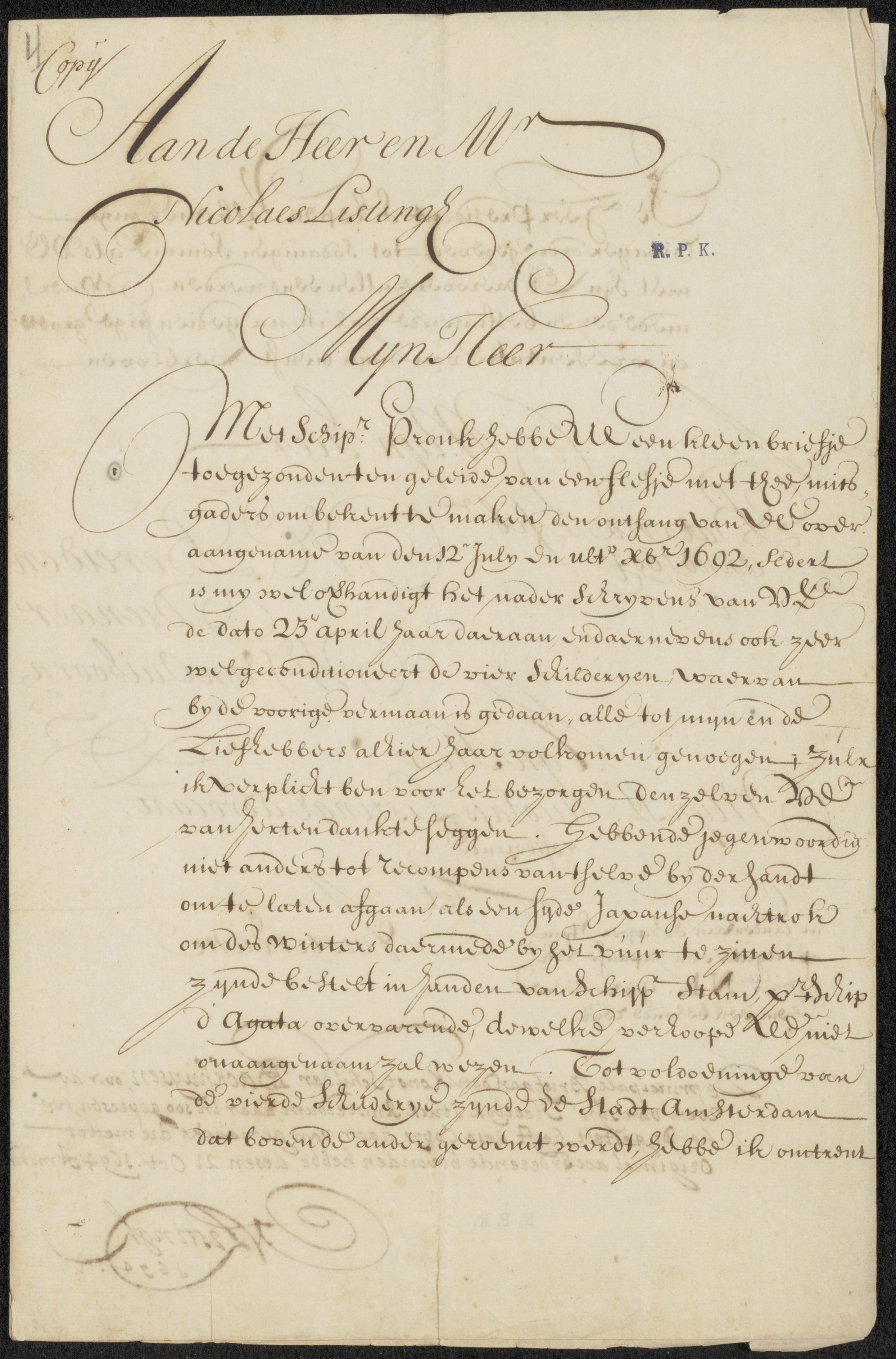 Brief aan Nicolaas Listingh