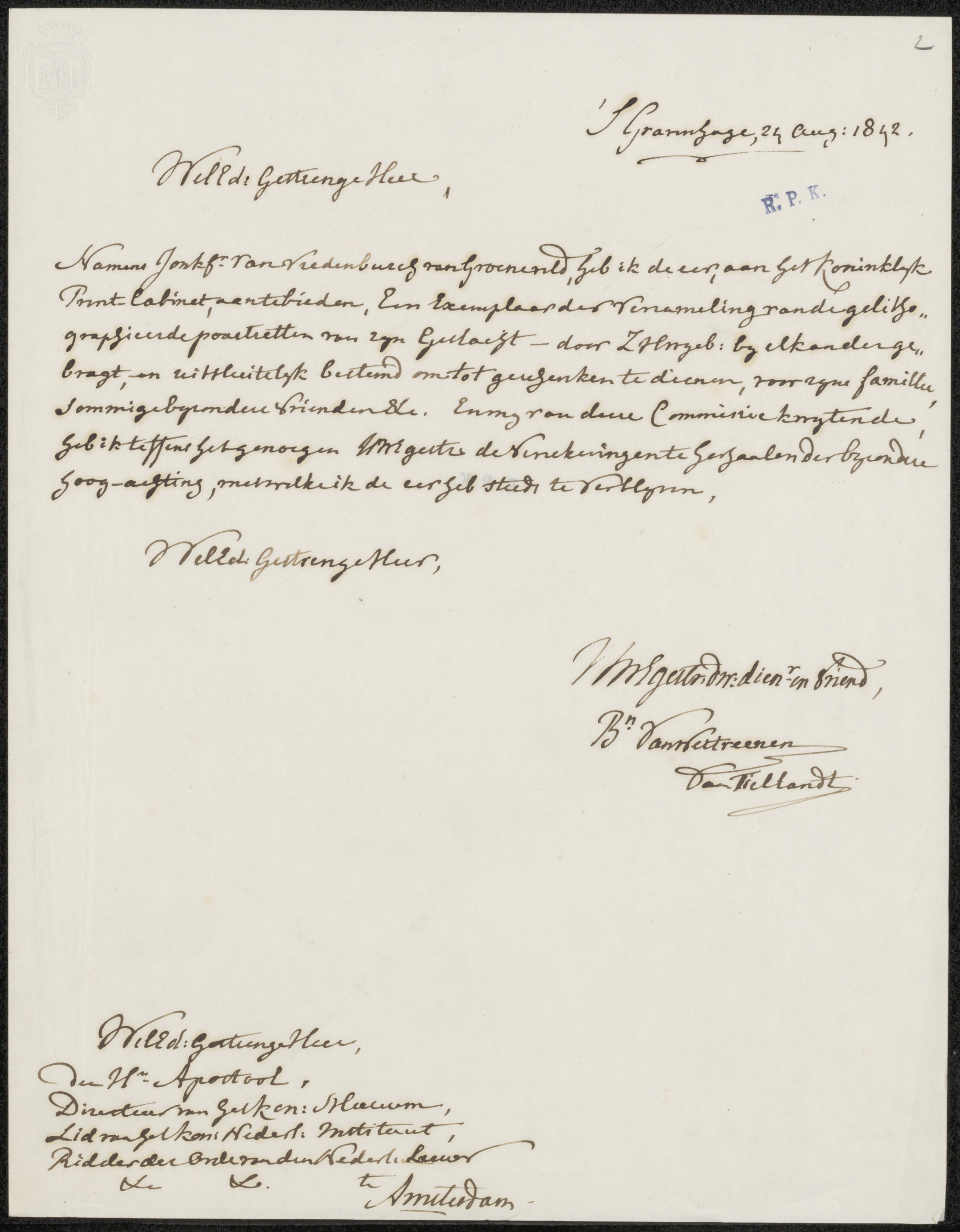 Brief aan jonkheer Barthold Willem Floris van Riemsdijk