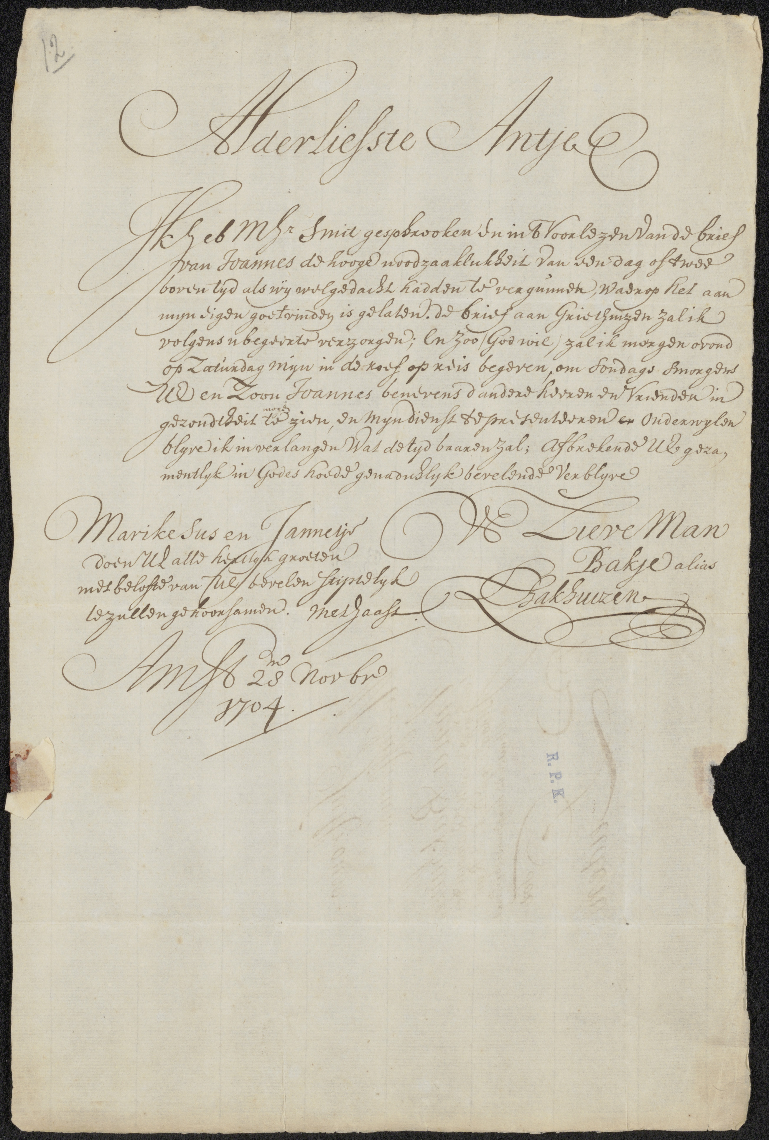 Brief aan Anna de Hooghe