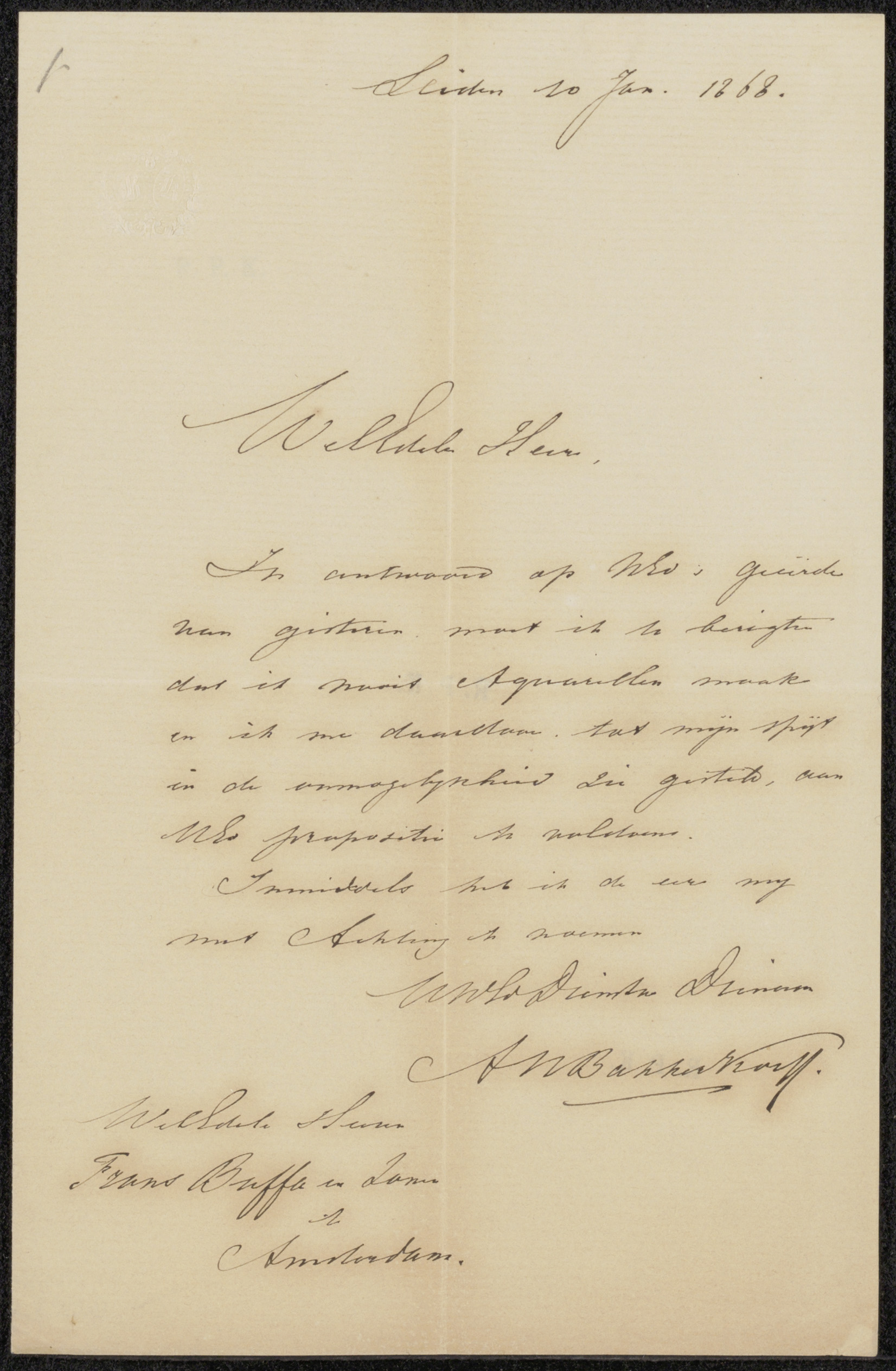 Brief aan Christina Sibilla Charlotte Bakhuizen