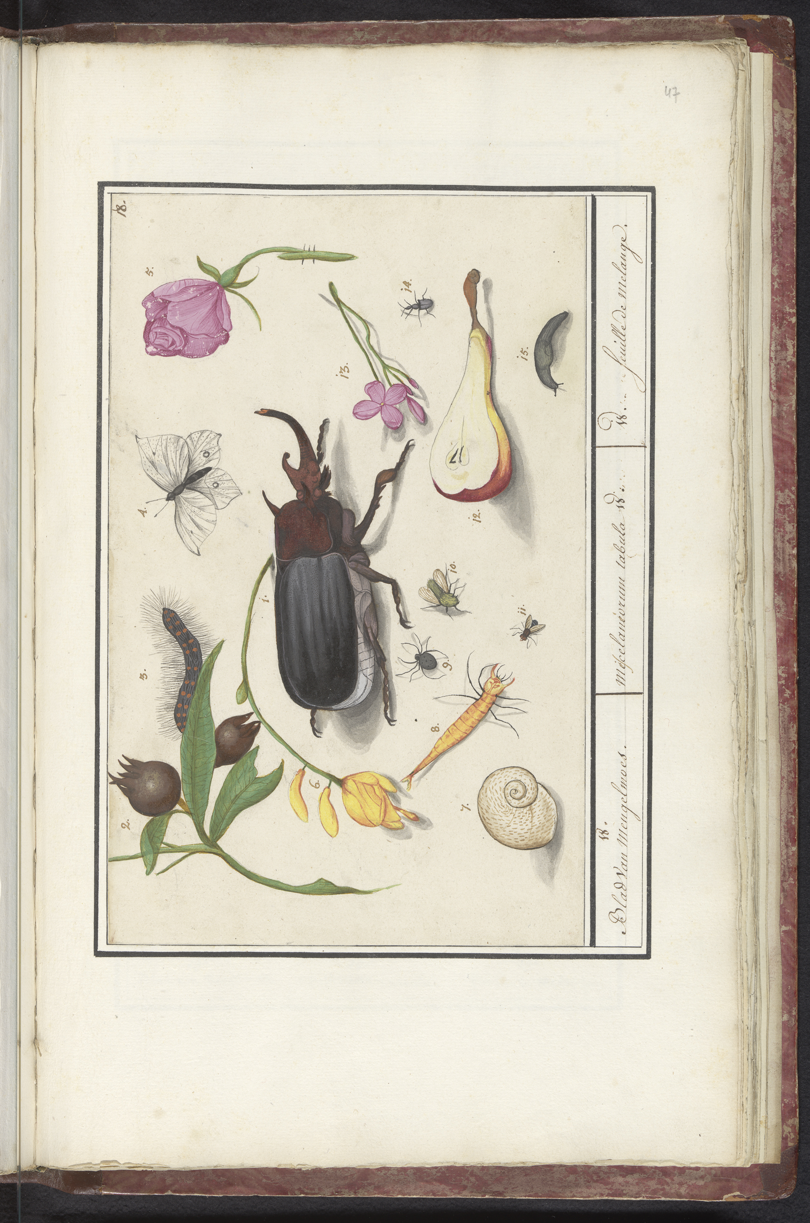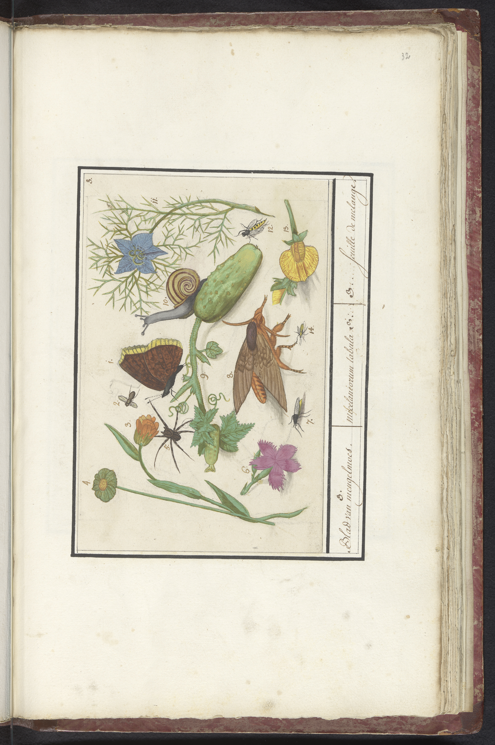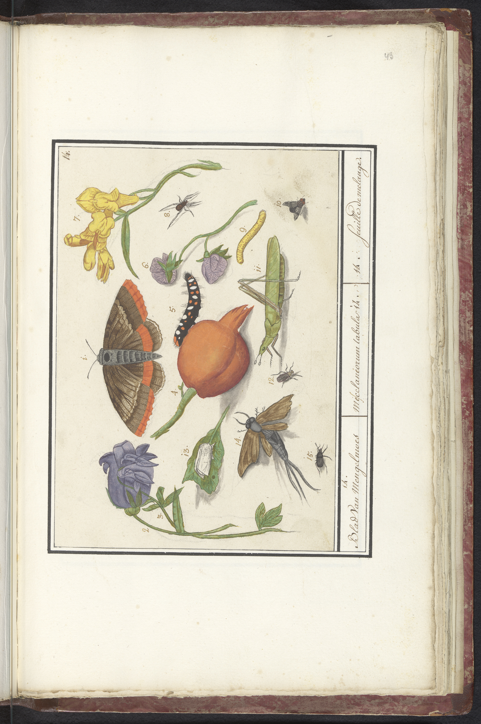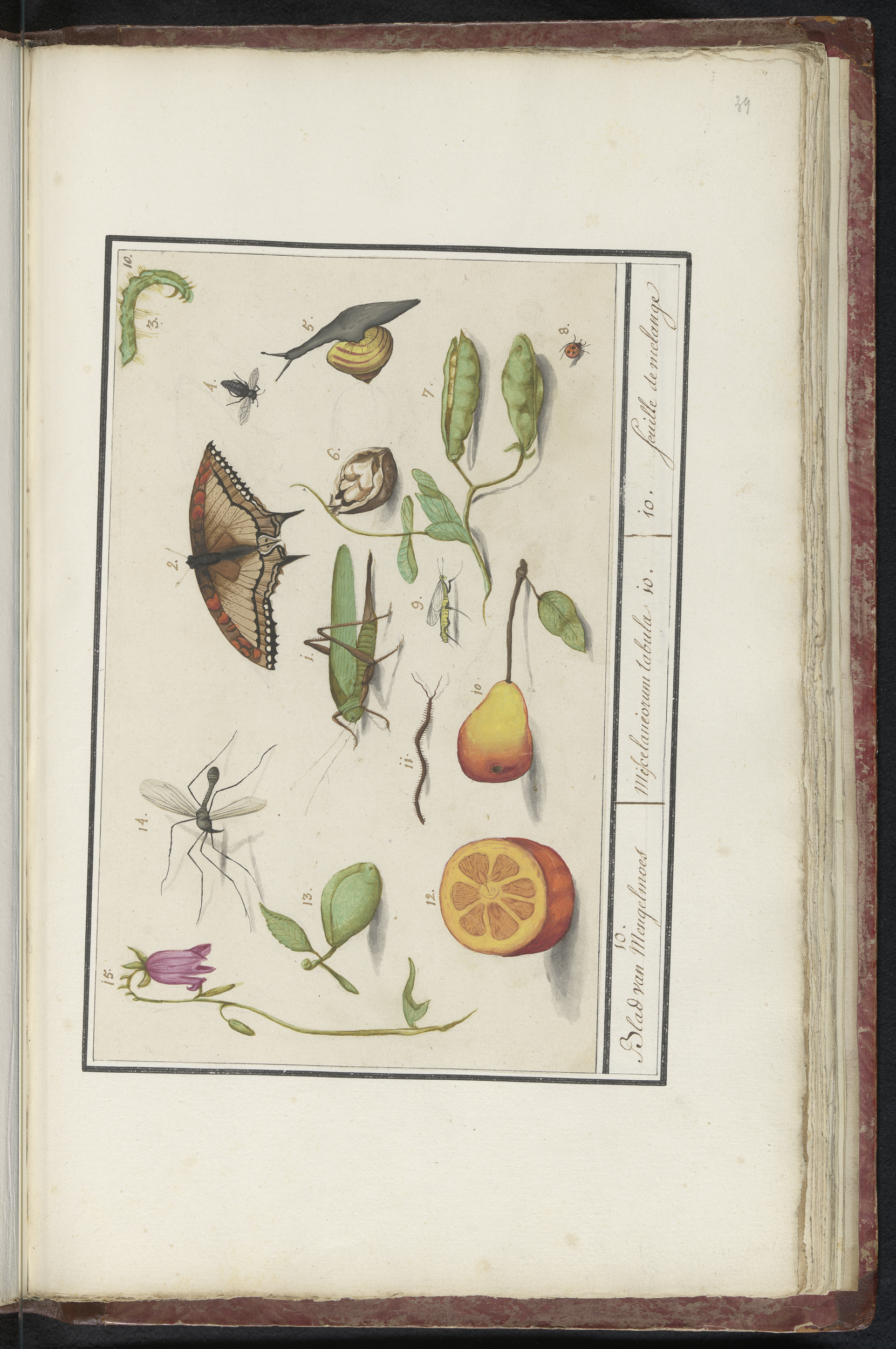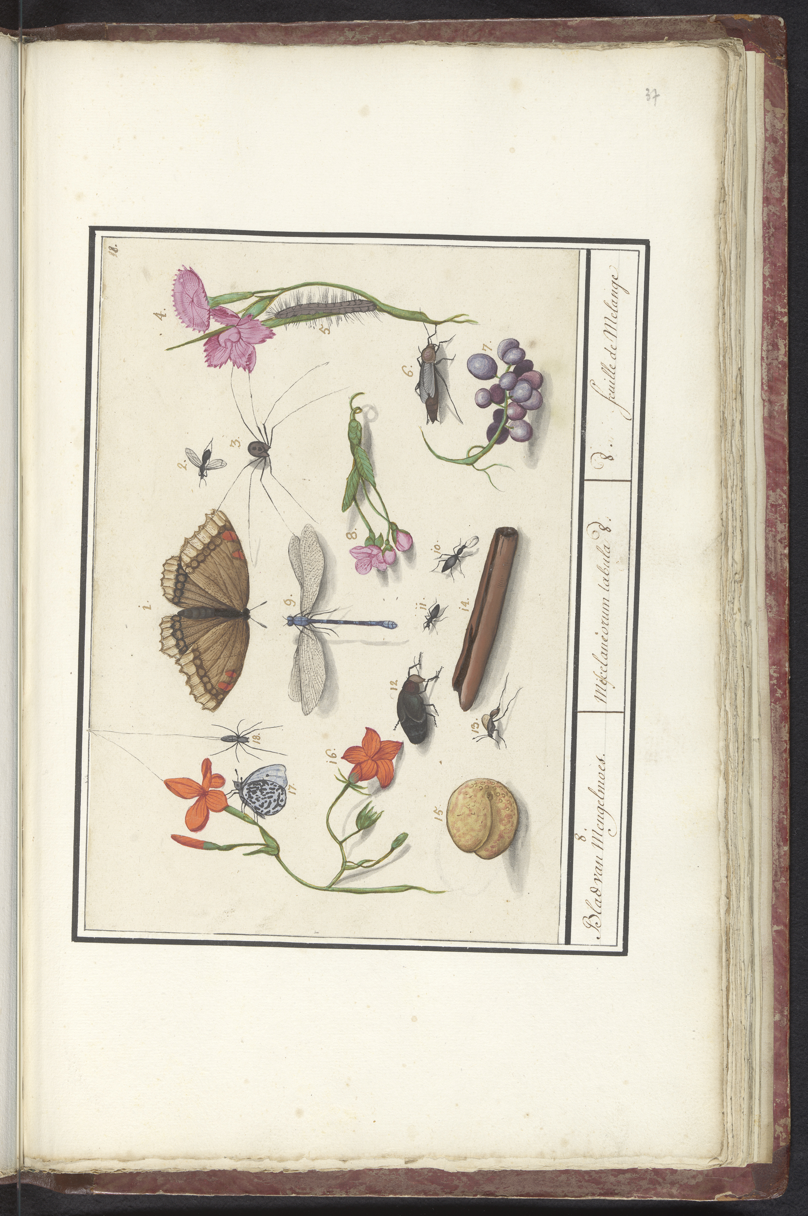 Blad met negenendertig insecten