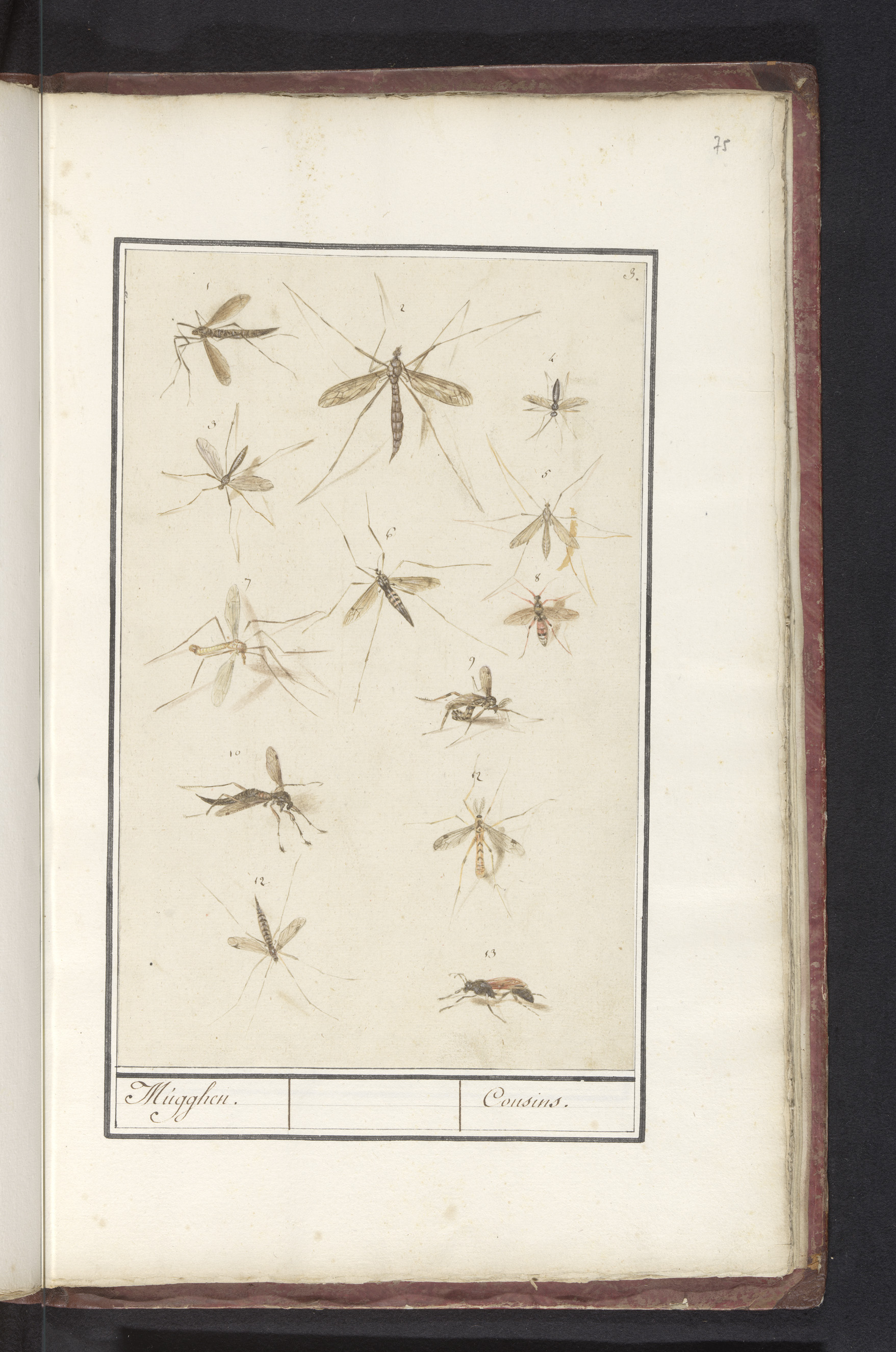 Blad met dertien muggen (Historia Naturalis van Rudo...