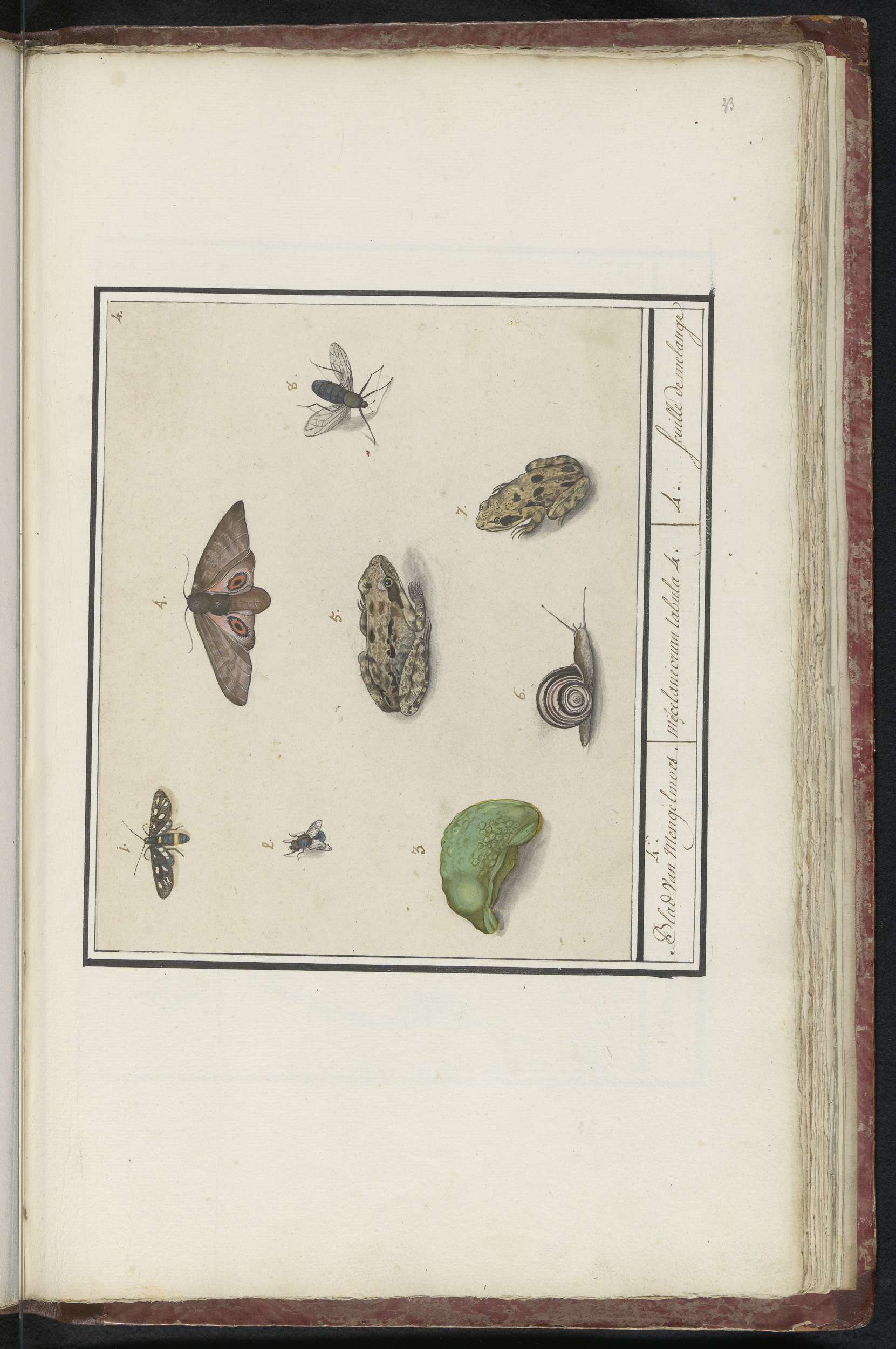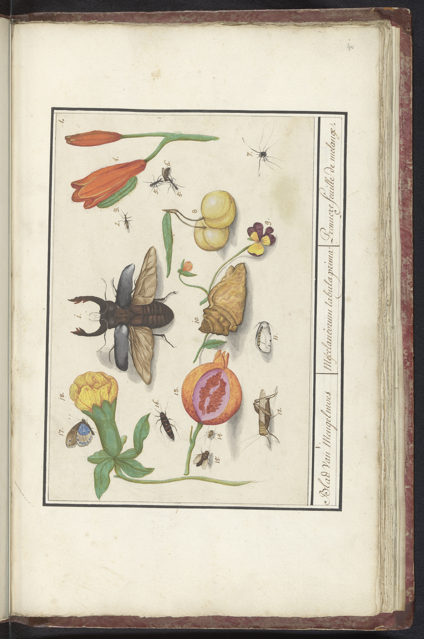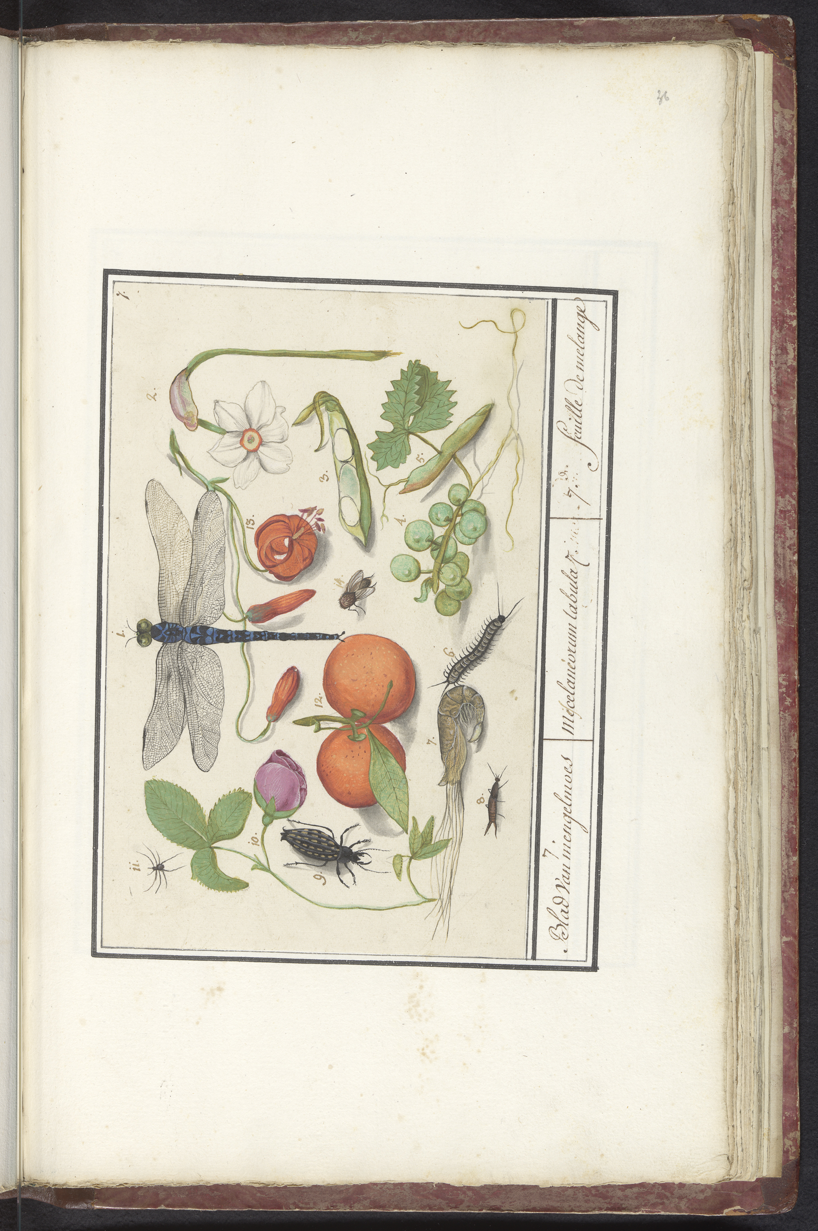 Blad met tweeëntwintig gevleugelde insecten