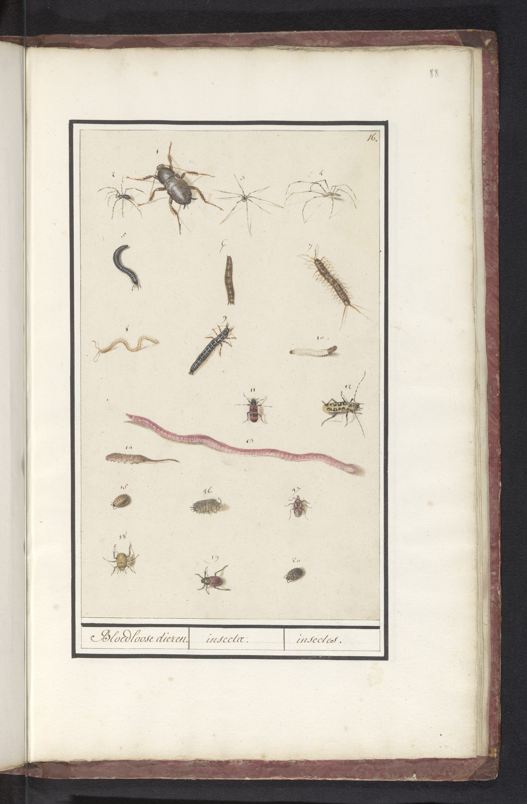 Blad met verschillende insecten en spinnen