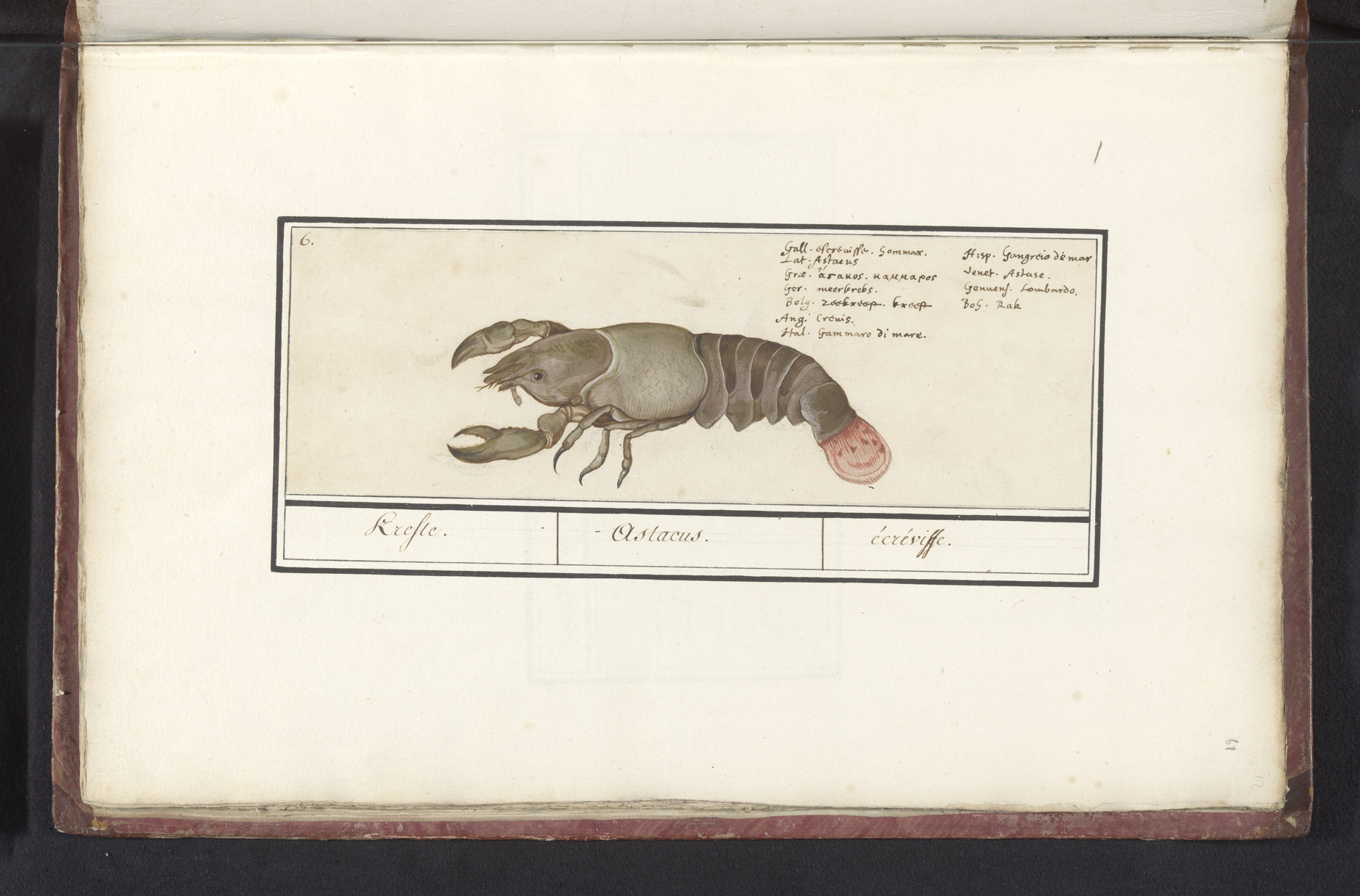 Blad met acht kreeftachtigen en weekdieren