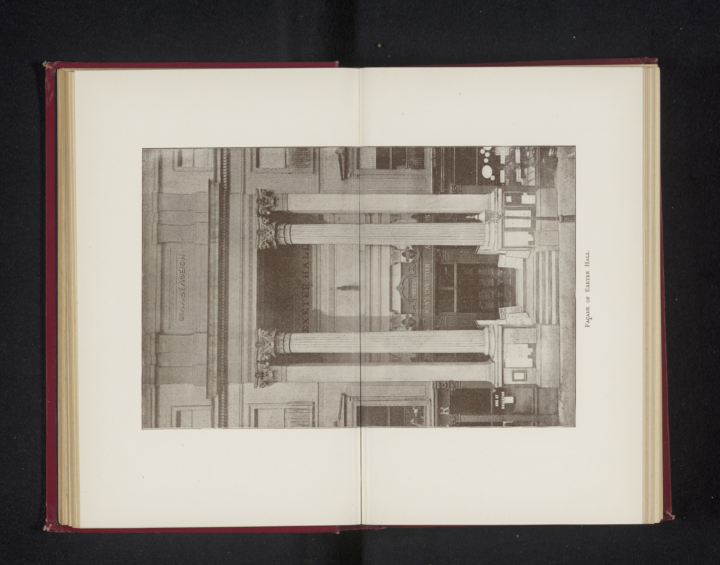 Gezicht op de façade van Exeter Hall in Londen