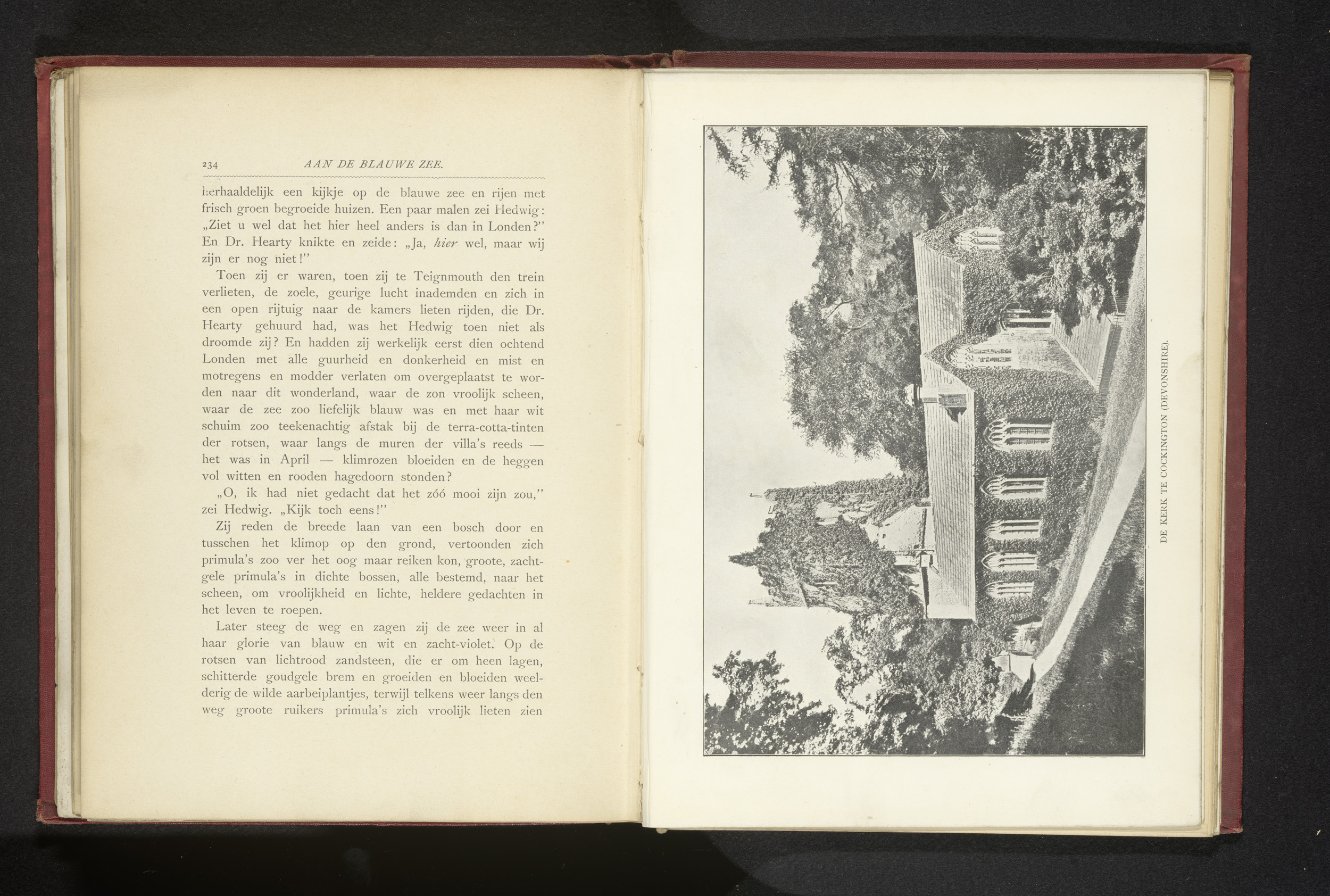 Gezicht op de kerk in Cockington in Devon, Engeland