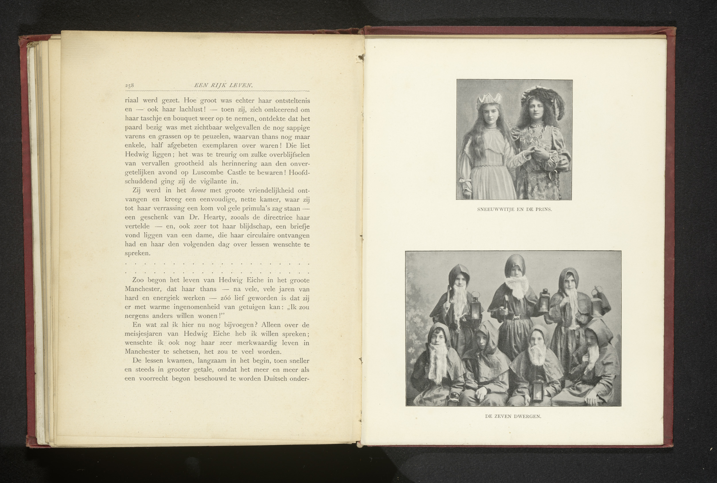 Zeven acteurs in kostuum die de zeven dwergen uit Sn...