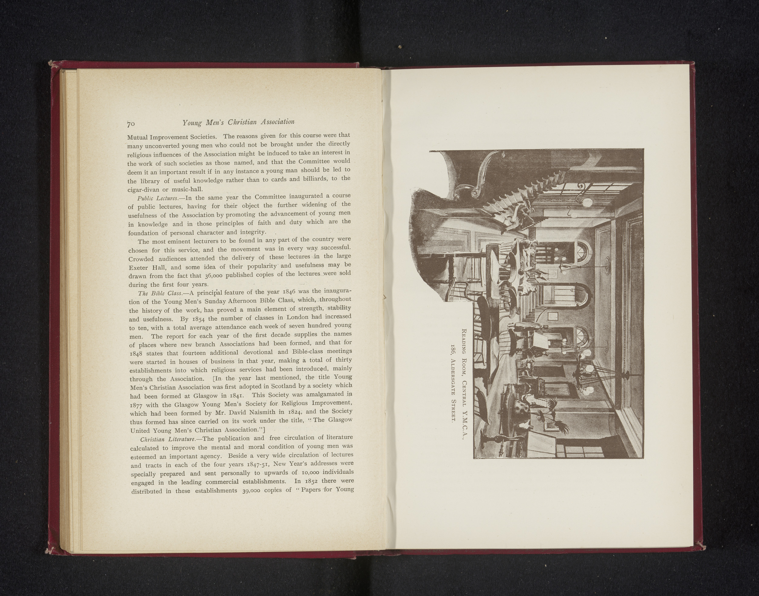 Reproductie van een tekening van de leeszaal van de ...