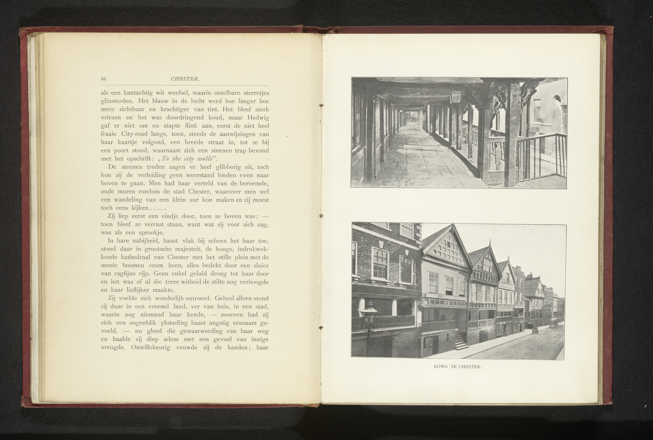 Gezicht op een rij huizen in Chester, Engeland
