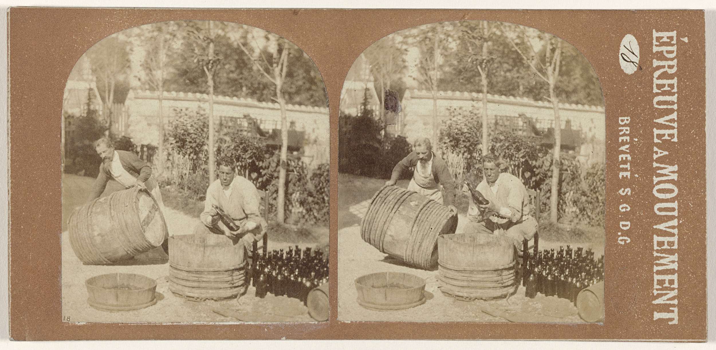 Twee mannen bottelen wijn