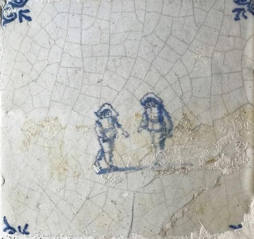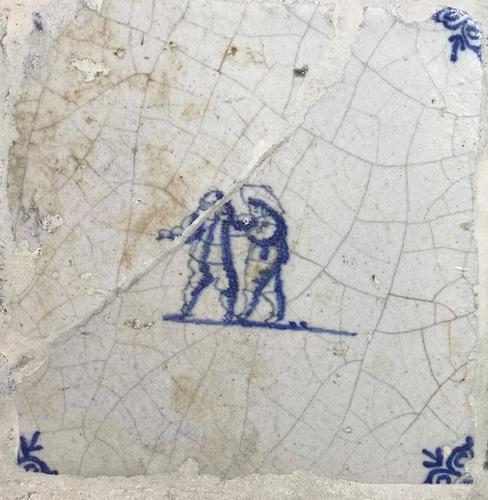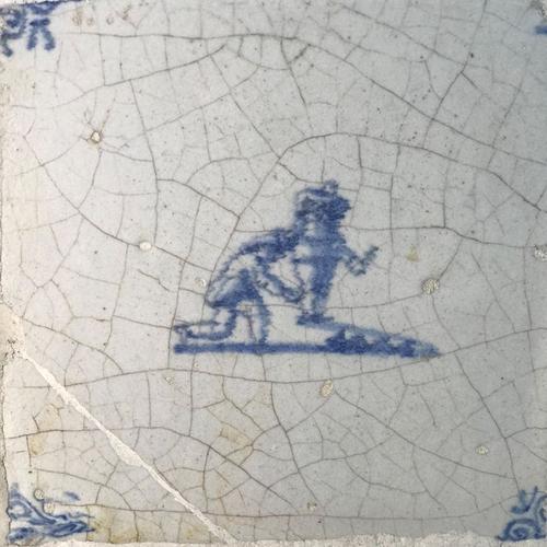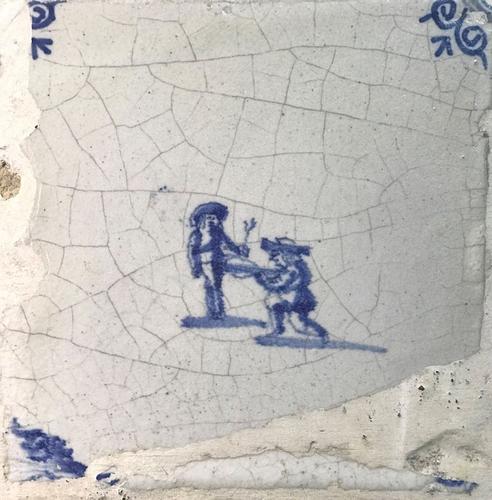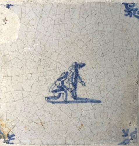 Tegel van aardewerk met tinglazuur voorstellende Klo...