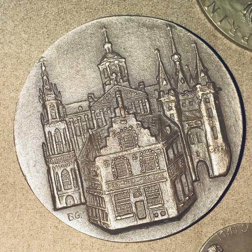 Penning met diverse gebouwen