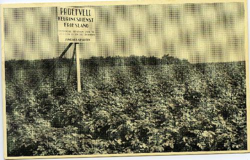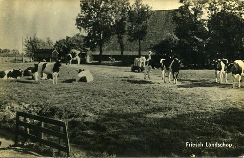 Prentbriefkaart in zwart-wit van weidelandschap bij ...