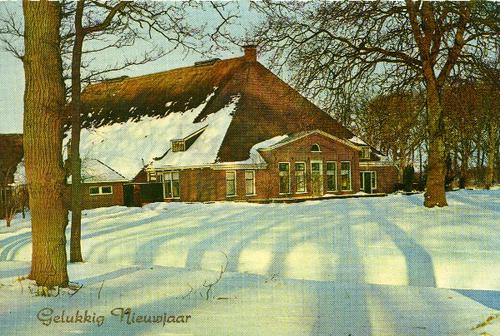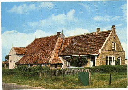 Prentbriefkaart in kleur van een stelpboerderij bij ...