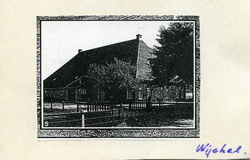 Prentbriefkaart in zwart-wit van een boerderij te Wy...