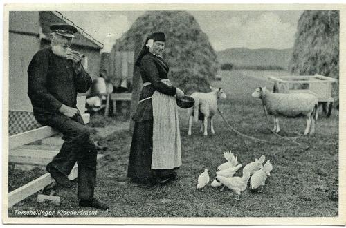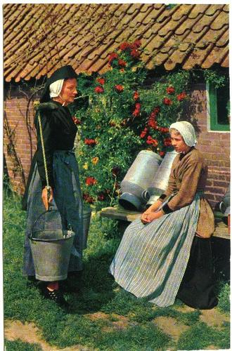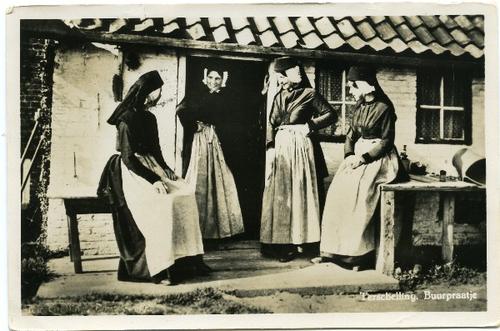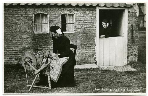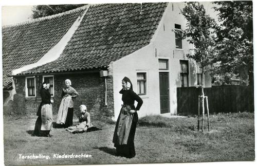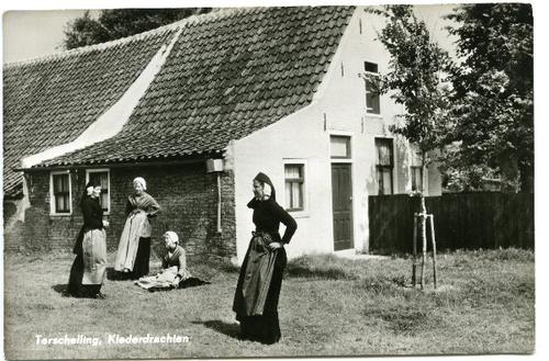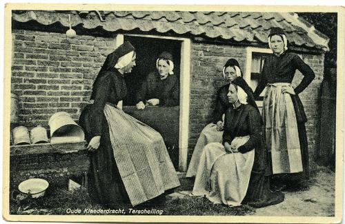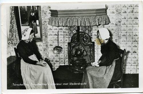 Prentbriefkaart van Terschellinger vrouwen in kleder...