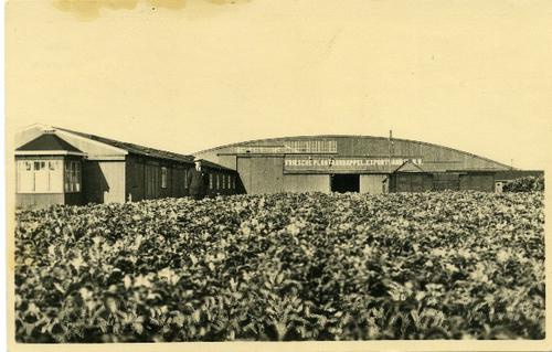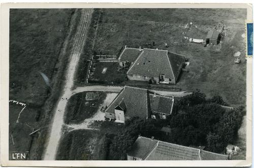 Prentbriefkaart met een luchtfoto van boerderijen op...