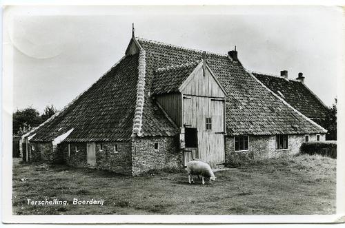 Prentbriefkaart in kleur van een boerderij op Tersch...