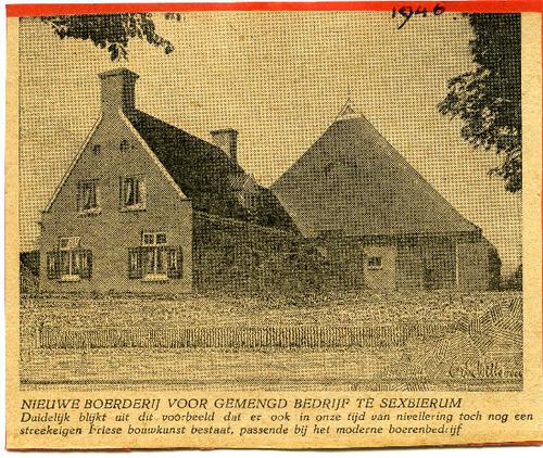 Knipsel met een fotocopie van een boerderij te Engelum