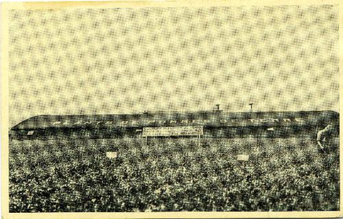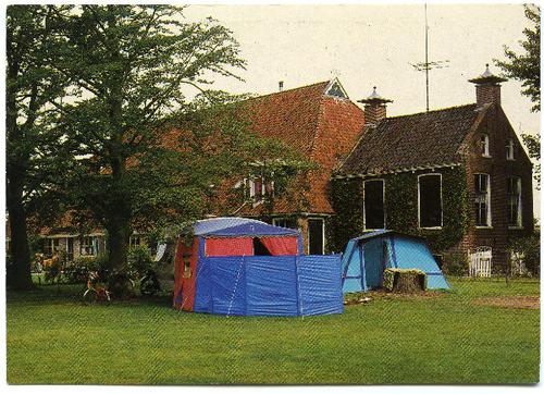 Prentbriefkaart in zwart-wit van een kampeerboerderi...