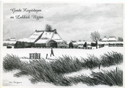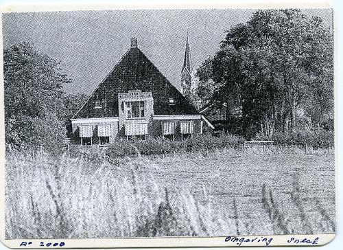 Prentbriefkaart in zwart-wit van kamperboerderij "de...