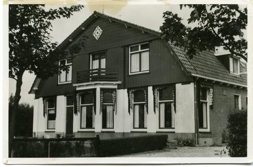 Knipsel in zwart-wit van een voorhuis van een boerde...
