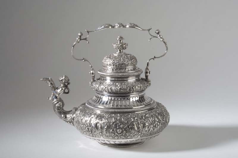 Theeketel, peervormig lichaam met gedreven Daniël Ma...