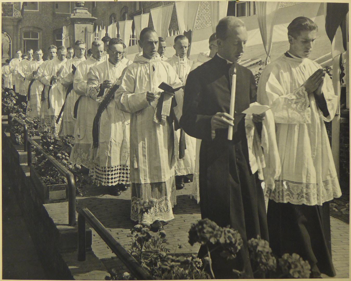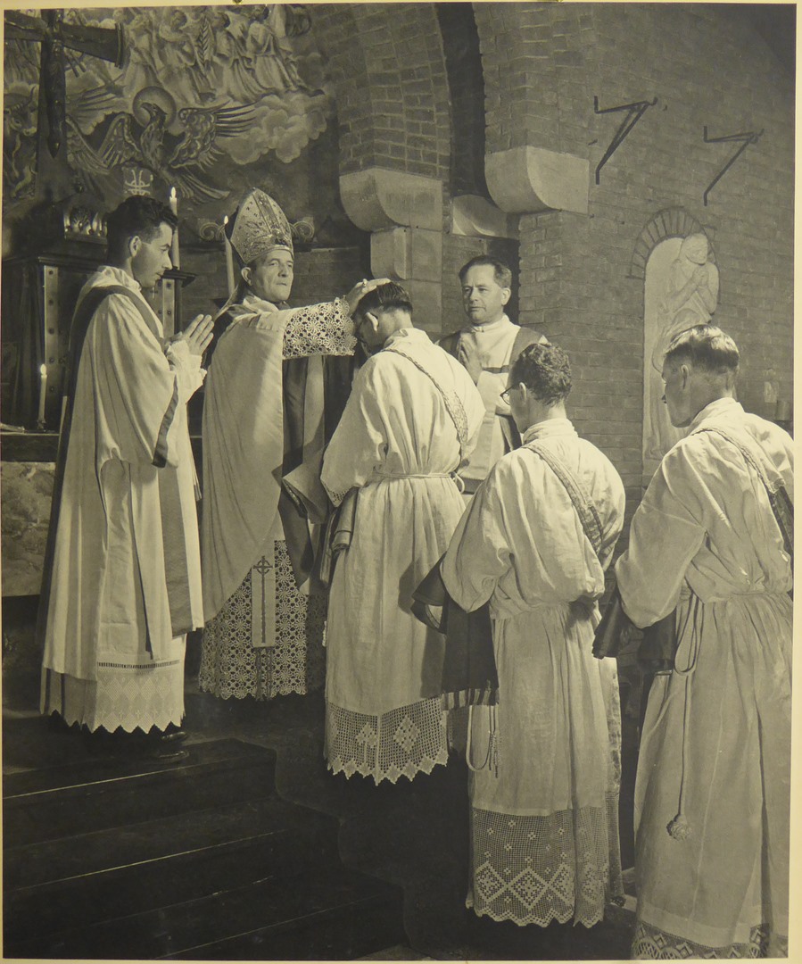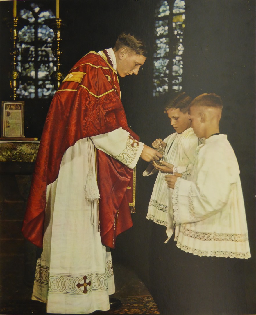 Serie schoolplaten, priester aan het altaar tijdens ...