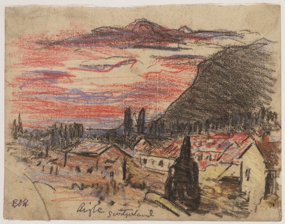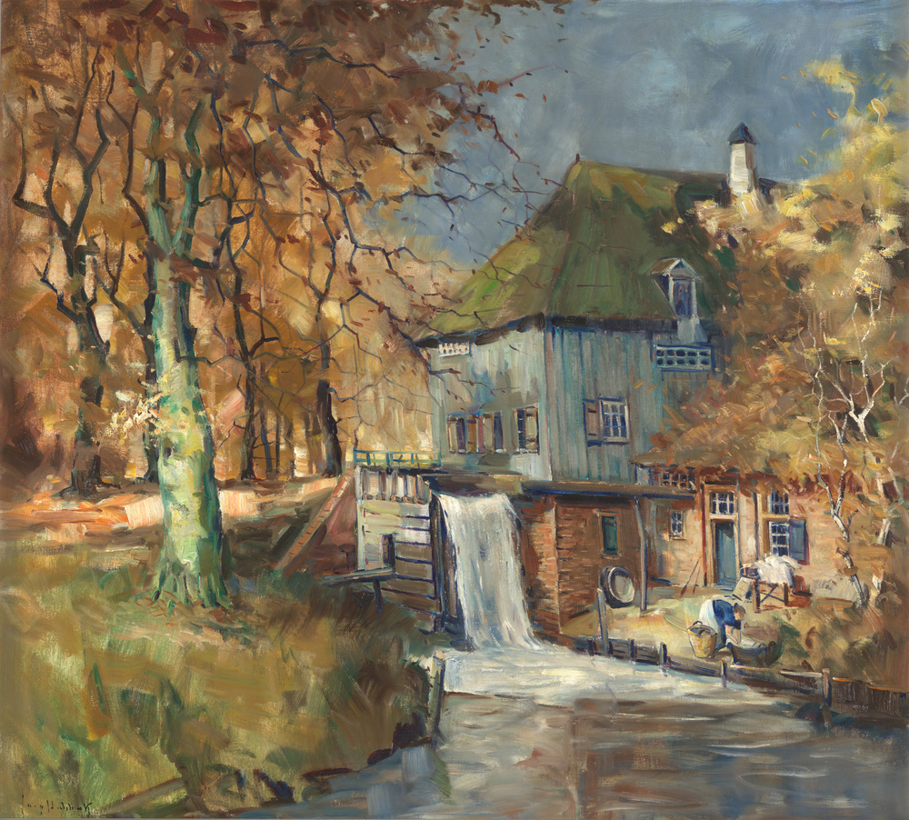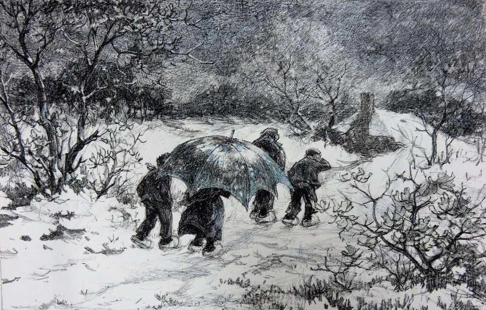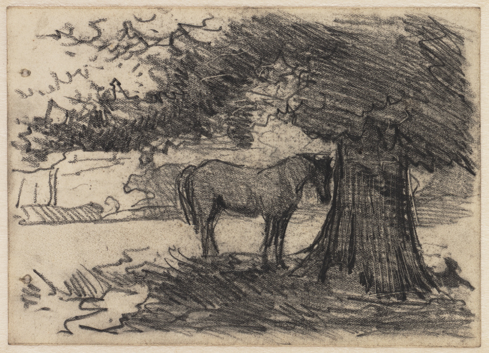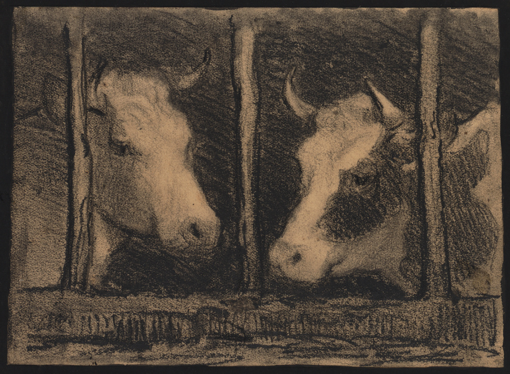 Boerderij met boerin en kruiwagen. 'Studie Nunspeet'.