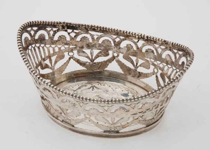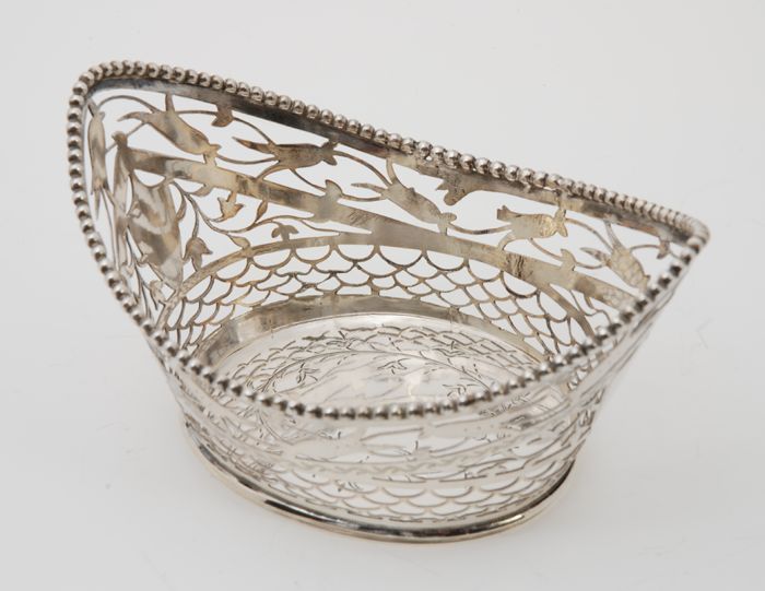 Zilveren opengewerkt mandje: bonbonbak