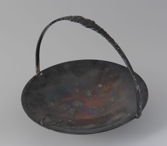 Zilveren bonbonschaal met hengsel en kleine afbeeldi...