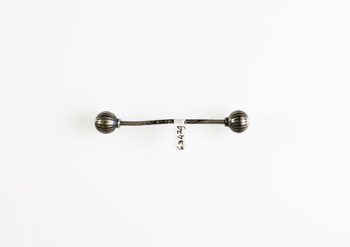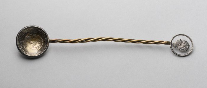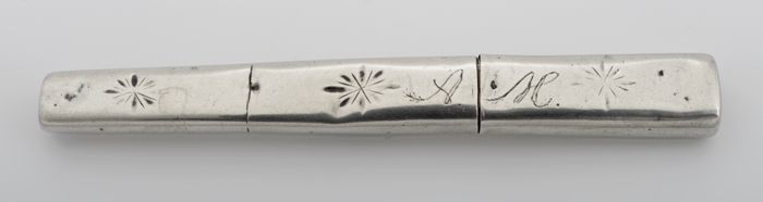 Zilveren boordenspeld eindigend in twee gegraveerde ...