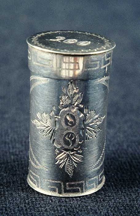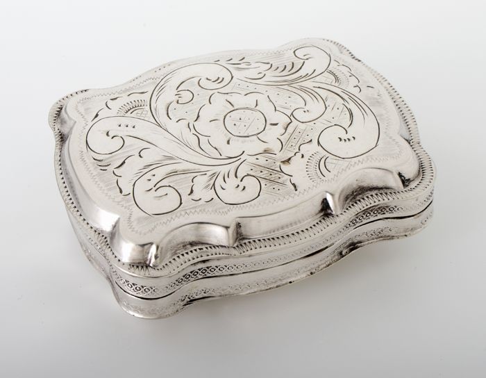 Langwerpig zilveren luciferdoos