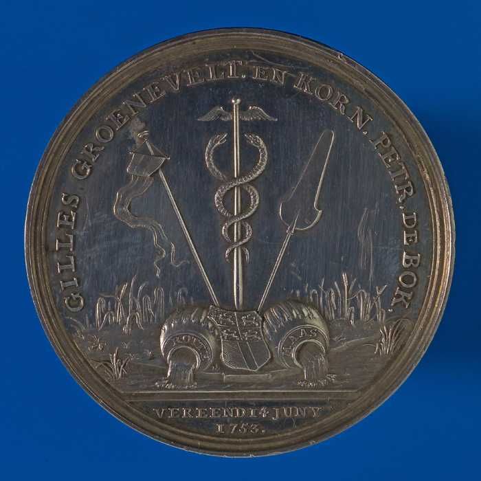 Geheel gegraveerde penning aangeboden aan de heren S...